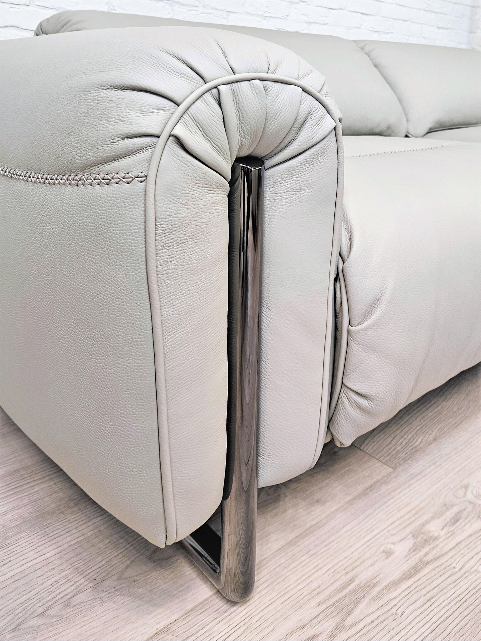 Обивка выполнена из высококачественной натуральной кожи с лицевой стороны. Задняя часть дивана обита экокожей, полностью имитирующей натуральную кожу лицевой стороны.