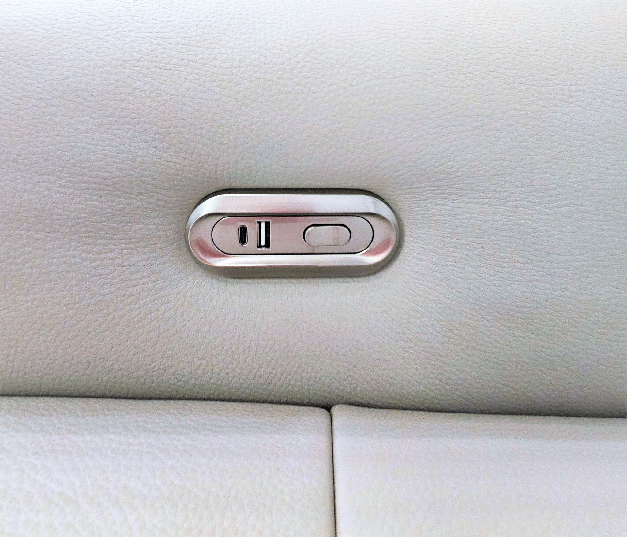 Реклайнер позволяет менять наклон спинки и поднимать подножку до полулежащего положения. Кнопка каждого электромеханизма находится на внутренней части подлокотника, там же встроен порт USB и Type-C.
