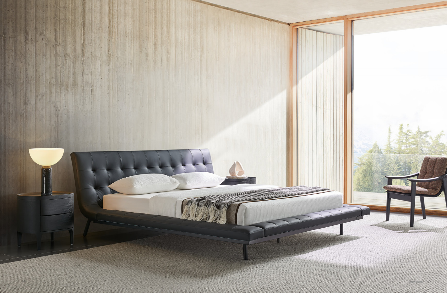 Каркас кровати выполнен из массива и металла. Наполнитель - эластичный пенополиуретан. Кровать представлена в коже черного цвета.