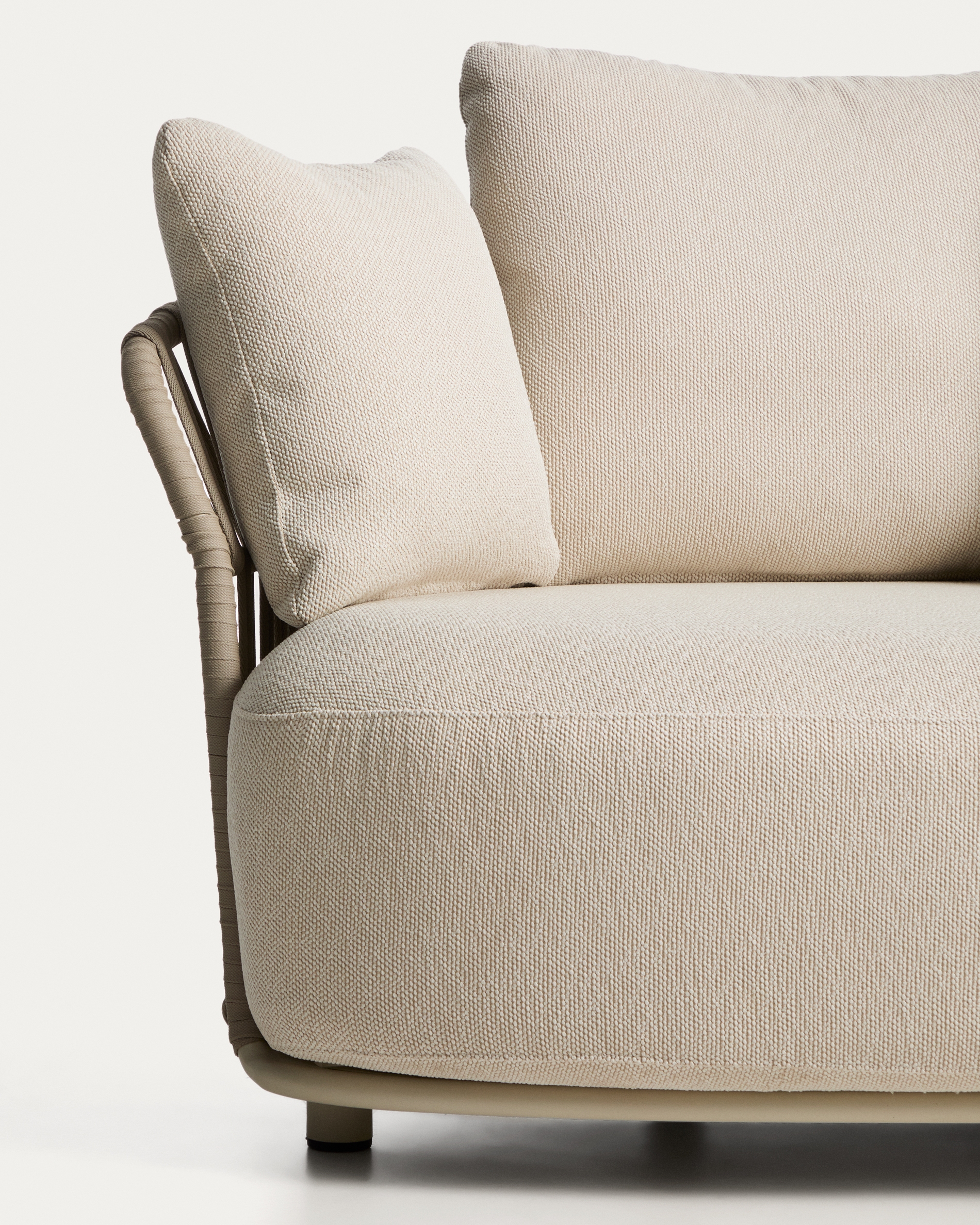 Изогнутый модуль уличного дивана Osani из алюминия экрю и веревки цвета таупе 167 см