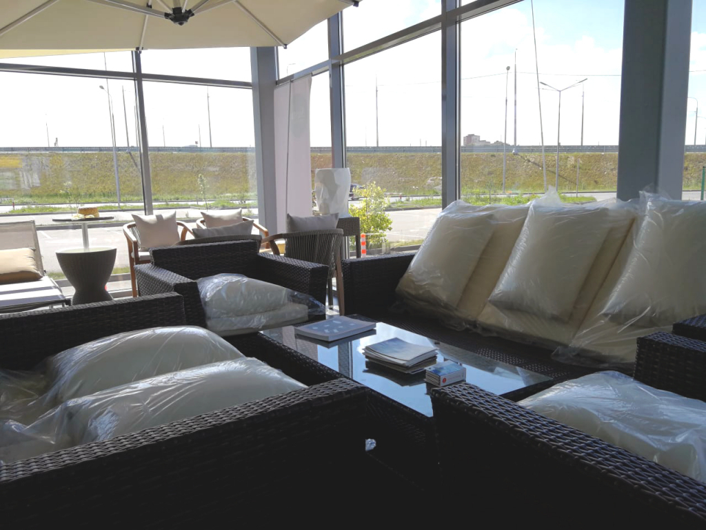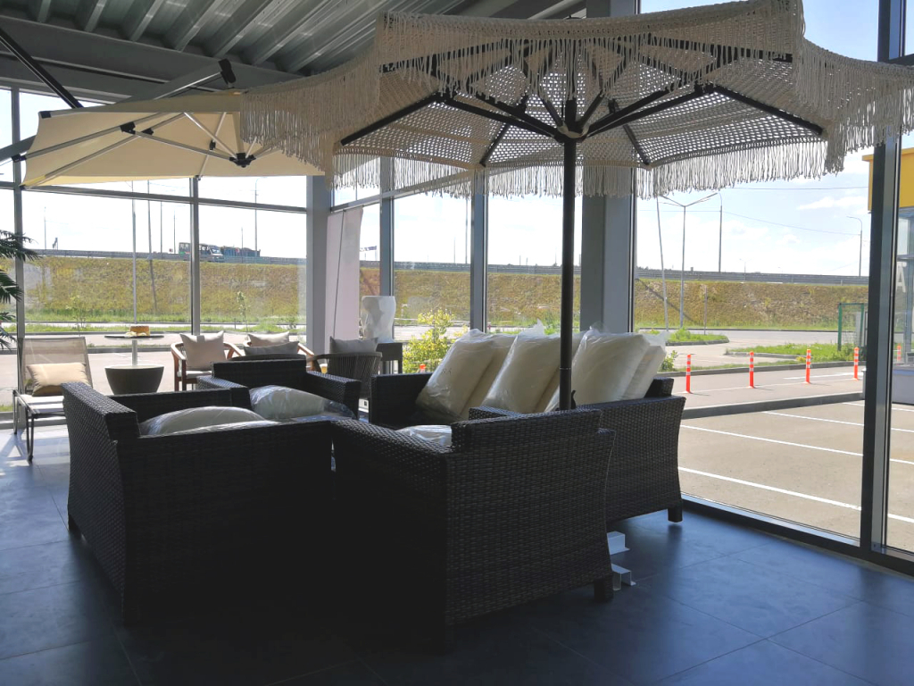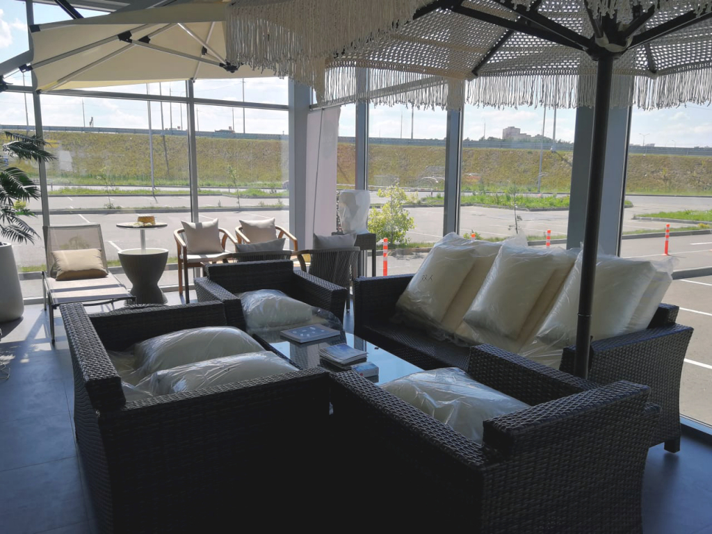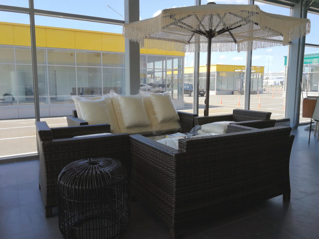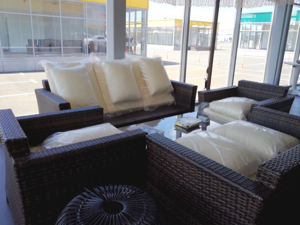 - Мебель выполнена на алюминиевом каркасе с порошковым покрытием, оплетенном искусственным ротангом.
