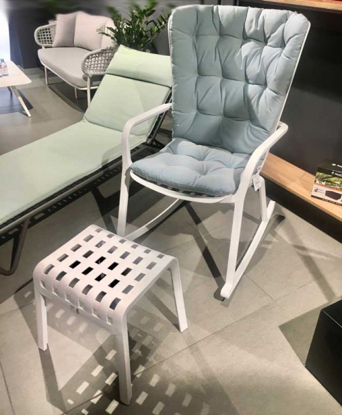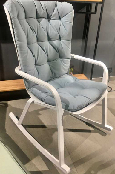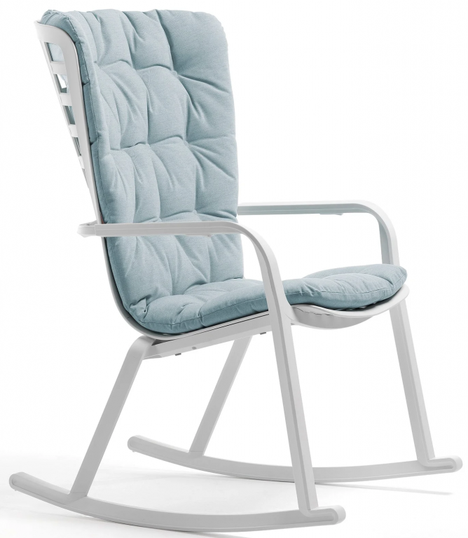 Фабрика внесла изменения в палитру подушек. Данный цвет доступен к заказу до исчерпания складских запасов.Дизайн: Raffaello Galiotto. Folio - это инновационное расслабляющее кресло, регулируемое в двух положениях, предназначенное для уличного использования. Изготовлено из перерабатываемой стекловолоконной смолы. Кресло Folio может быть выполнено с фиксированным основанием либо на ножках-полозьях как романтическое кресло-качалка. Основная конструкция кресла сделана из одного перфорированного стекловолоконного листа (отсюда и название на итальянском языке "folio"), украшенного квадратным узором. Особенностью кресла является его изогнутый дизайн, не требующий каких-либо связующих элементов между сидением и спинкой. Кресло Folio полностью изготовлено в Италии - от дизайна до изготовления пресс-форм и производства. Кресло-качалка Folio - это украшение интерьера, мебель для комфортного отдыха и приятный тренажер для здоровья. Особенности: Каркас кресла выполнен из стеклопластика, преимуществами которого являются долговечность, устойчивость к воздействию коррозии и солнцу. Прочность структуры стеклопластика можно сравнить с показателями стали, при этом изделия из стеклопластика в разы легче металлических. Благодаря простому и удобному запатентованному Nardi ручному двухкнопочному механизму, спрятанному под подлокотником, спинку кресла можно отрегулировать в двух положениях с комфортом и легкостью. Кресло оснащено двумя полозьями, которые превращают кресло-качалку не просто в место для отдыха, а и для релаксации. В комплекте удобная стеганая подушка, которая легко и незаметно крепится к спинке двумя ремнями на липучках. Чехол на подушке несъемный, но ее можно стирать при температуре 30°C. Подушка выполнена из 100% окрашенного акрила с грязеотталкивающей и антиплесневой обработкой. Наполнитель - пенополиуретан. Плотность 18 кг/м3. Данный комплект (кресло, полозья, подушка) упаковывается в коробку размером 960х760х1200 мм. Открыть технические характеристики кресла. Открыть технические характеристики подушки. Открыть технические характеристики полозьев. Цена указана за модель с полозьями и подушкой. Цены на другие модели уточняйте у наших менеджеров.