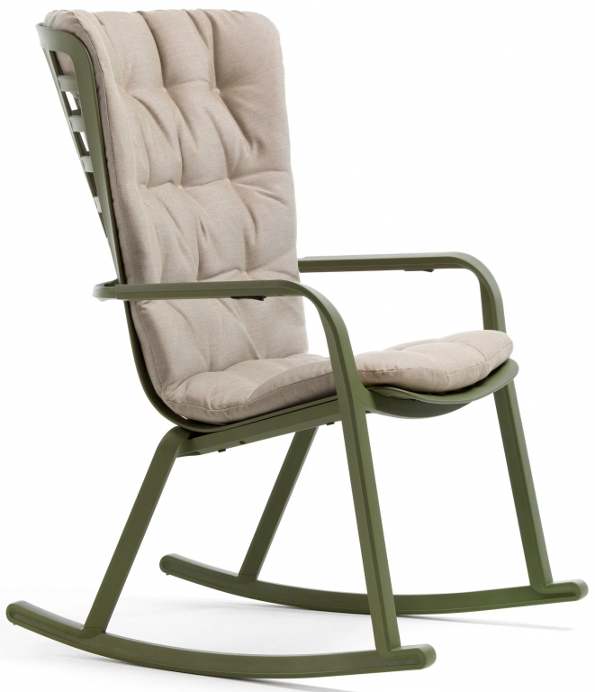 Дизайн: Raffaello Galiotto. Folio - это инновационное расслабляющее кресло, регулируемое в двух положениях, предназначенное для уличного использования. Изготовлено из перерабатываемой стекловолоконной смолы. Кресло Folio может быть выполнено сфиксированным основанием либо на ножках-полозьяхкак романтическое кресло-качалка. Основная конструкция кресла сделана из одного перфорированного стекловолоконного листа(отсюда и название на итальянском языке "folio"), украшенного квадратным узором. Особенностью кресла является его изогнутый дизайн,не требующий каких-либо связующих элементов между сидением и спинкой. КреслоFolio полностью изготовлено в Италии -от дизайна до изготовления пресс-форм и производства. Кресло-качалка Folio - это украшение интерьера, мебель для комфортного отдыха и приятный тренажер для здоровья. Особенности: Каркас кресла выполнен из стеклопластика, преимуществами которого являются долговечность, устойчивость к воздействию коррозии и солнцу. Прочность структуры стеклопластика можно сравнитьс показателями стали, при этомизделия из стеклопластика в разы легче металлических. Благодаря простому и удобному запатентованному Nardi ручному двухкнопочномумеханизму, спрятанному под подлокотником, спинку кресла можно отрегулировать в двух положениях с комфортом и легкостью. Кресло оснащено двумя полозьями, которые превращают кресло-качалку не просто в место для отдыха, а идля релаксации. В комплекте удобнаястеганаяподушка, которая легко и незаметно крепитсяк спинке двумя ремнями на липучках. Чехол на подушке несъемный, ноее можно стирать при температуре 30°C. Подушка выполнена из 100% окрашенного в растворе акрила, светостойкость 7/8, водоотталкивающая, грязеотталкивающая и антиплесневая обработка. Наполнитель -пенополиуретан. Плотность 18 кг/м3. Открыть технические характеристики кресла. Открытьтехнические характеристики подушки. Открыть технические характеристики полозьев. Цена указана за модель с полозьями и подушкой. Цены на другие модели уточняйте у наших менеджеров.