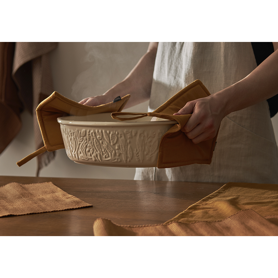 - Изготовленная из каменной керамики форма равномерно прогревается и создает условия для идеального пропекания теста.