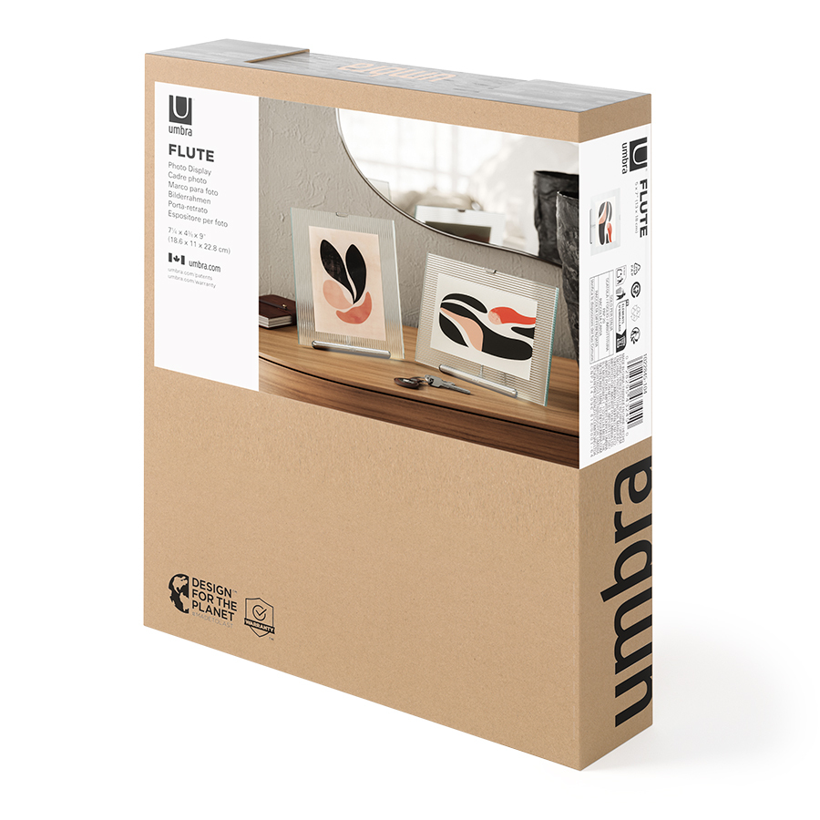Фоторамка Flute превращает обычную фотографию в художественное произведение. Ребристая текстура стекла создает эффект легкой воздушности. Полированный металл добавляет благородного сияния, придавая изображению глубину и утонченность.