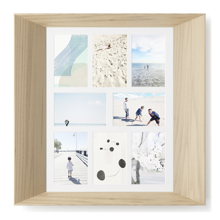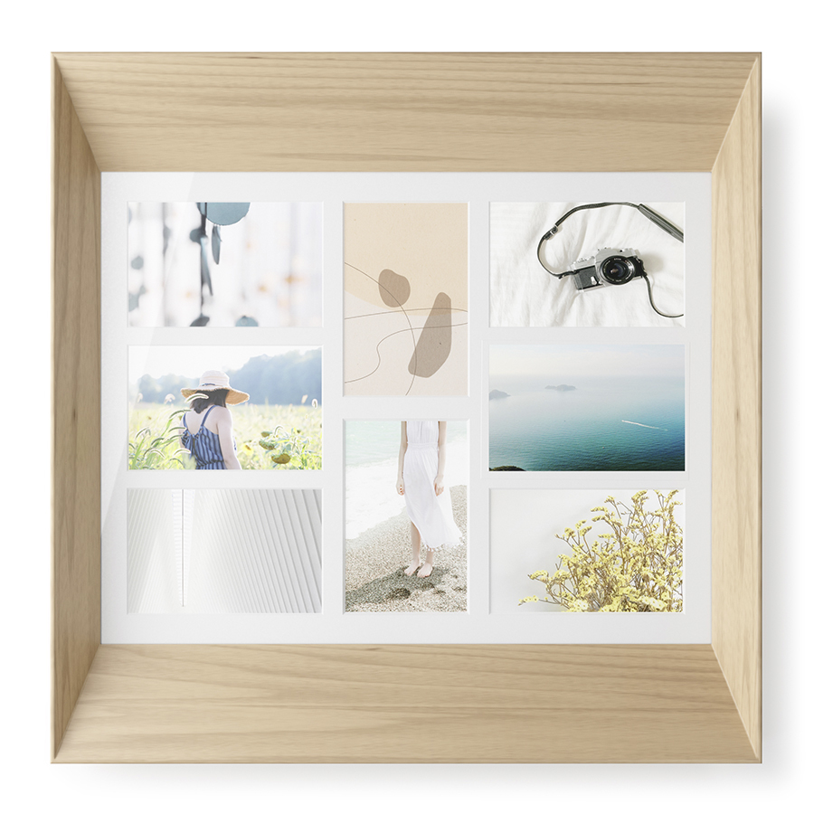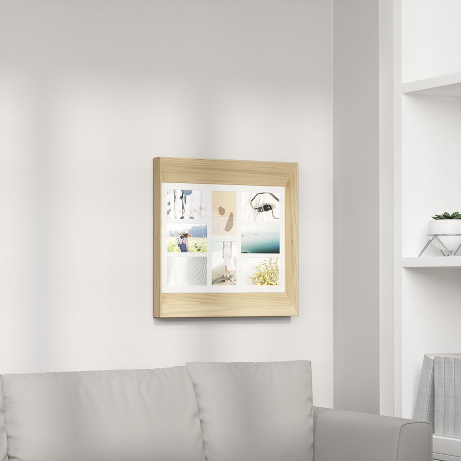 Стильная фоторамка из натурального дерева украсит интерьер комнаты. Фоторамка вмещает 8 фото по 10 х 15 см, а если вытащить специальную вставку - одно большое фото 35 х 46 см. Поставляется со всем необходимым монтажным оборудованием.