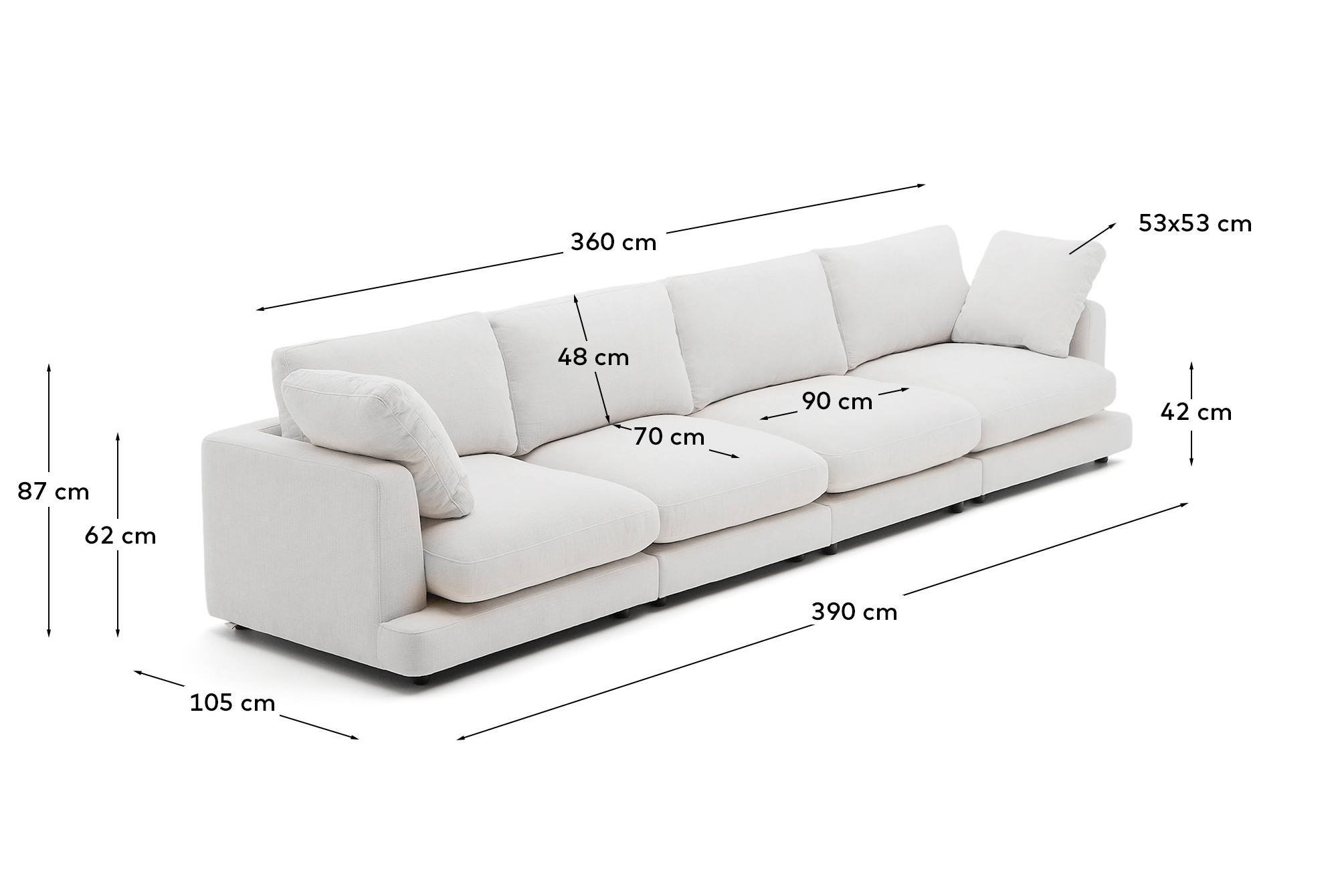 Gala 6-местный диван белого цвета 390 см