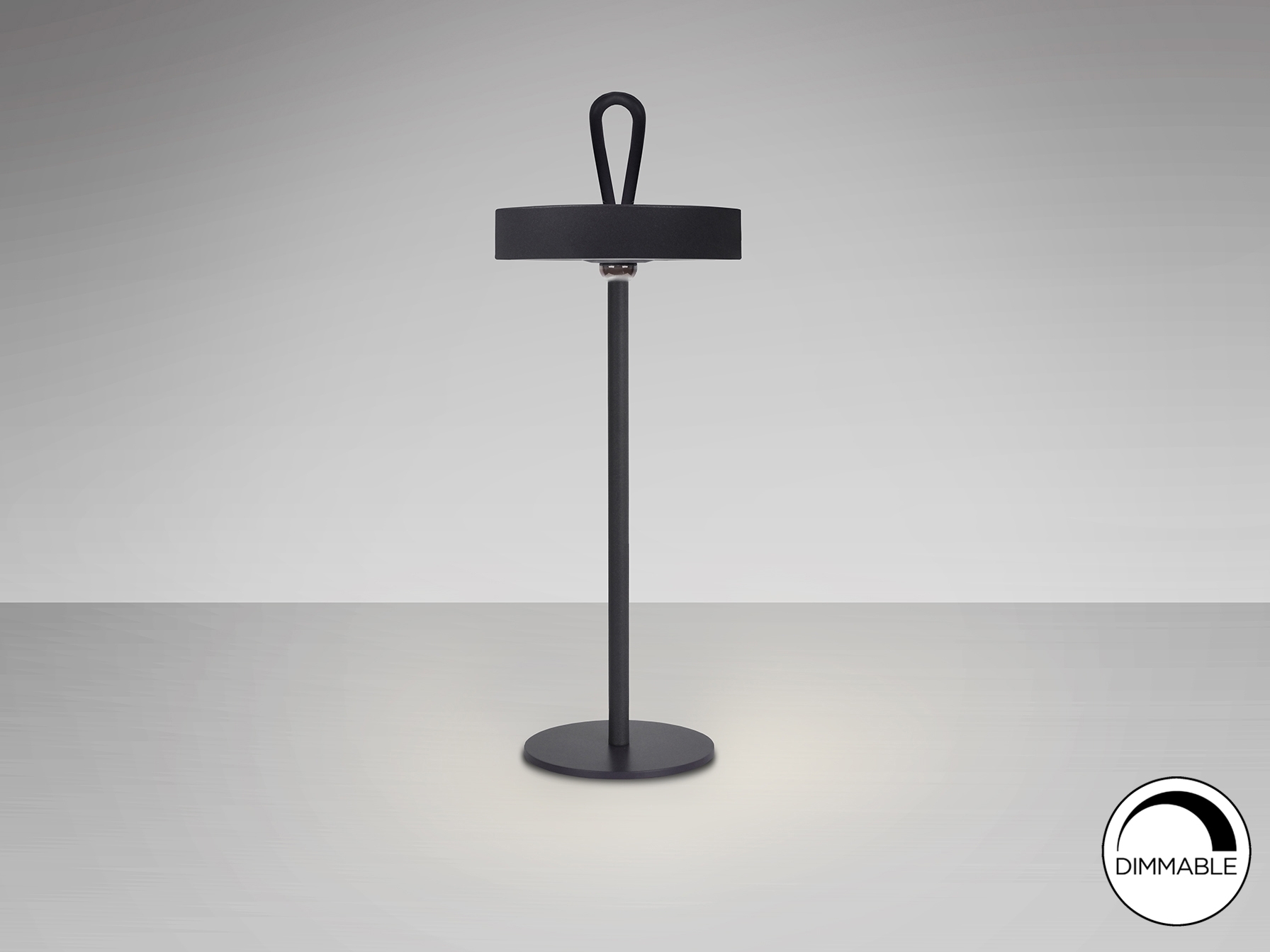 Светодиодная настольная лампа для внутреннего и наружного использования, переносной абажур с силиконовой ручкой и магнитной подставкой. Изготовлен из металла с черной отделкой и опалового акрила. Рассеиватель. Светодиод 2,5 Вт, 140 лм, 3000 К. ДИММИРУЕМАЯ. IP54.