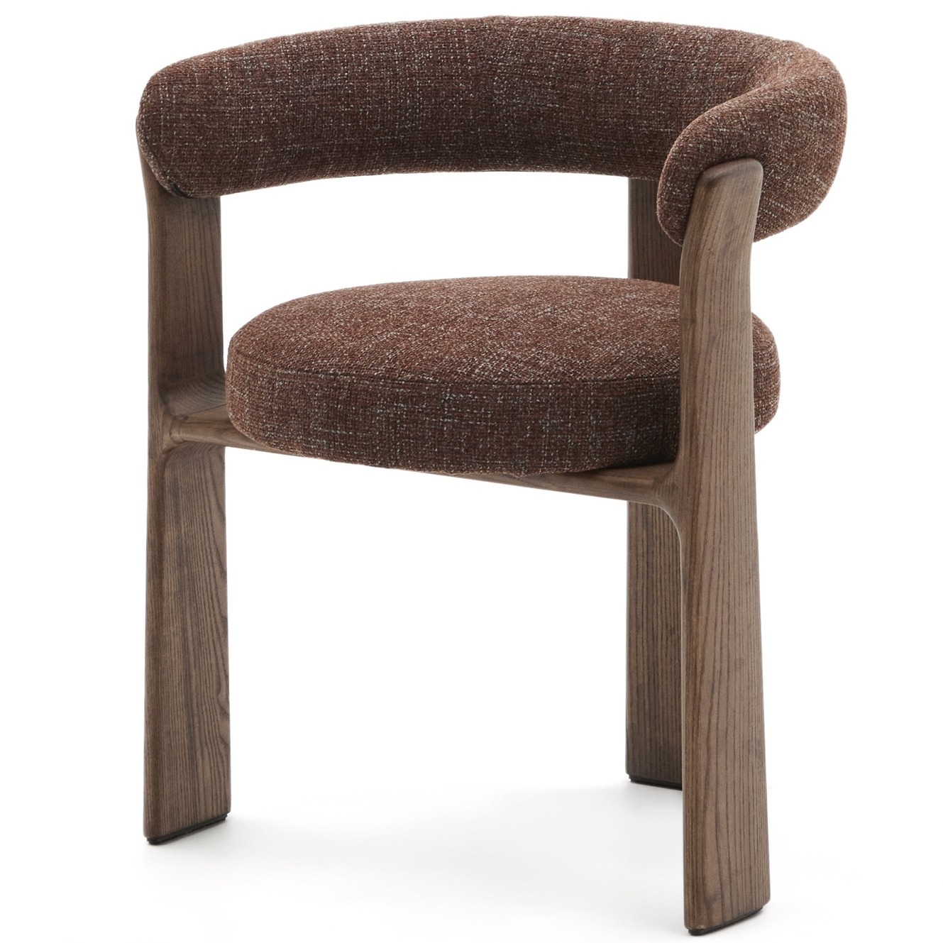 Стул Granite на 3 ножках из коричневого шенилла и массива ясеня в отделке орех