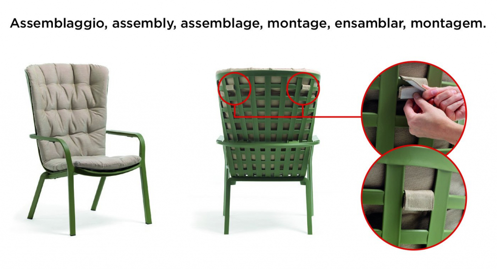 Folio - это инновационное расслабляющее кресло, регулируемое в двух положениях, предназначенное для уличного использования. Изготовлено из перерабатываемой стекловолоконной смолы. Кресло Folio может быть выполнено с фиксированным основанием либо на ножках-полозьях как романтическое кресло-качалка. Основная конструкция кресла сделана из одного перфорированного стекловолоконного листа (отсюда и название на итальянском языке "folio"), украшенного квадратным узором. Особенностью кресла является его изогнутый дизайн, не требующий каких-либо связующих элементов между сидением и спинкой. Кресло Folio полностью изготовлено в Италии - от дизайна до изготовления пресс-форм и производства.