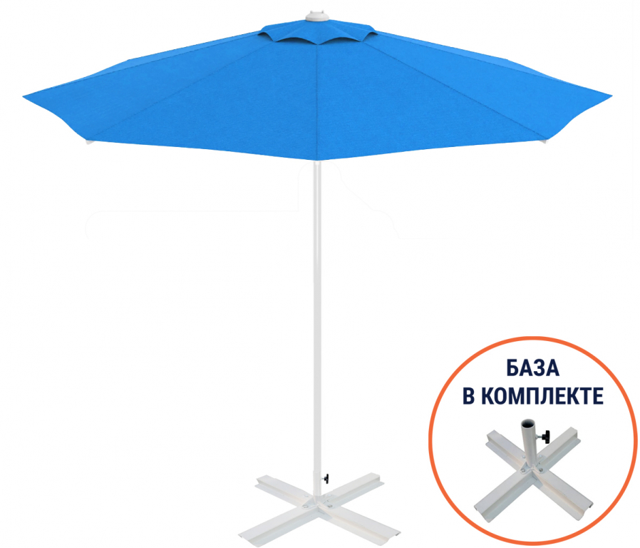 - Центральная опора Ø35 мм, с толщиной металла 2 мм, выполнена из алюминия. Алюминий окрашен и прошел специальную термообработку, которая повышает прочность и коррозионную стойкость зонта.