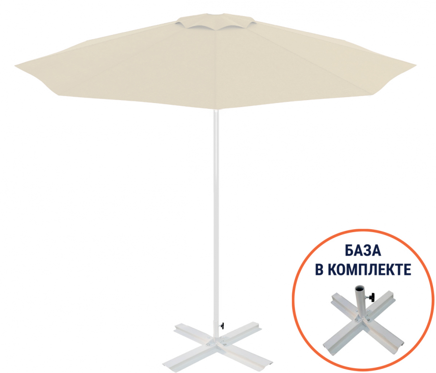 - Центральная опора Ø35 мм, с толщиной металла 2 мм, выполнена из алюминия. Алюминий окрашен и прошел специальную термообработку, которая повышает прочность и коррозионную стойкость зонта.
