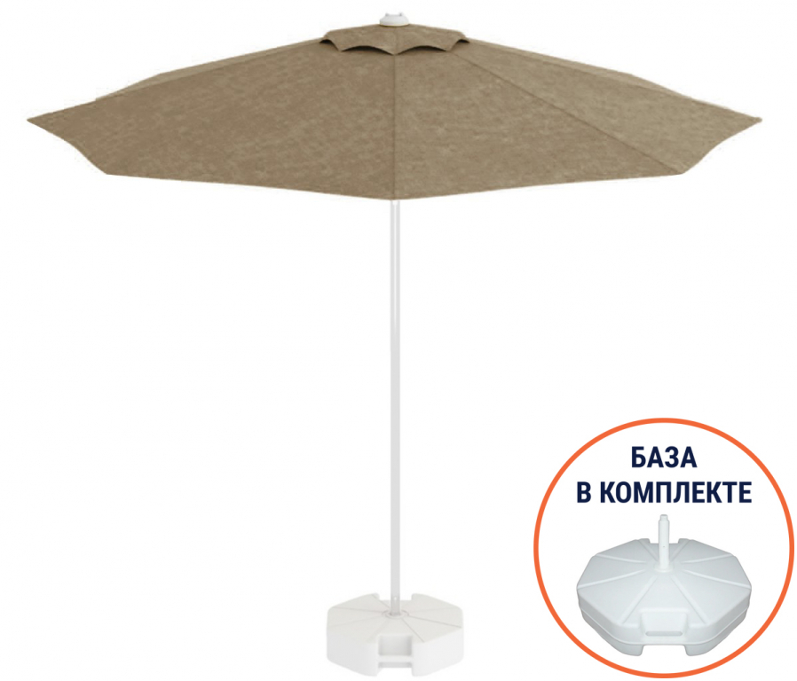 - Центральная опора Ø35 мм, с толщиной металла 2 мм, выполнена из алюминия. Алюминий окрашен и прошел специальную термообработку, которая повышает прочность и коррозионную стойкость зонта.