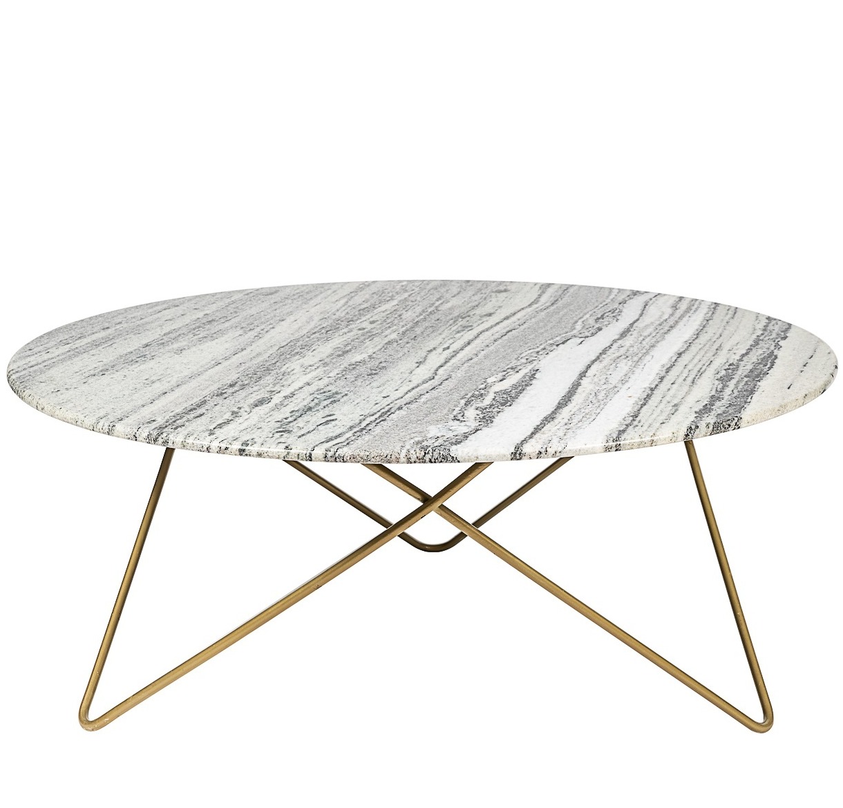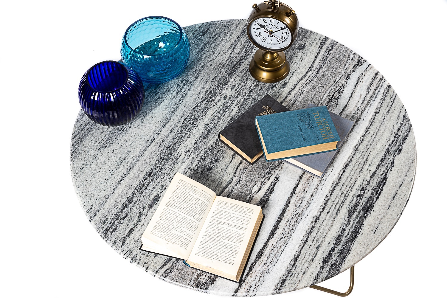 Большой кофейный столик из серии Marble. Сочетание натурального мрамора бело-серого оттенка и металла. Надежность, долговечность и природная красота.