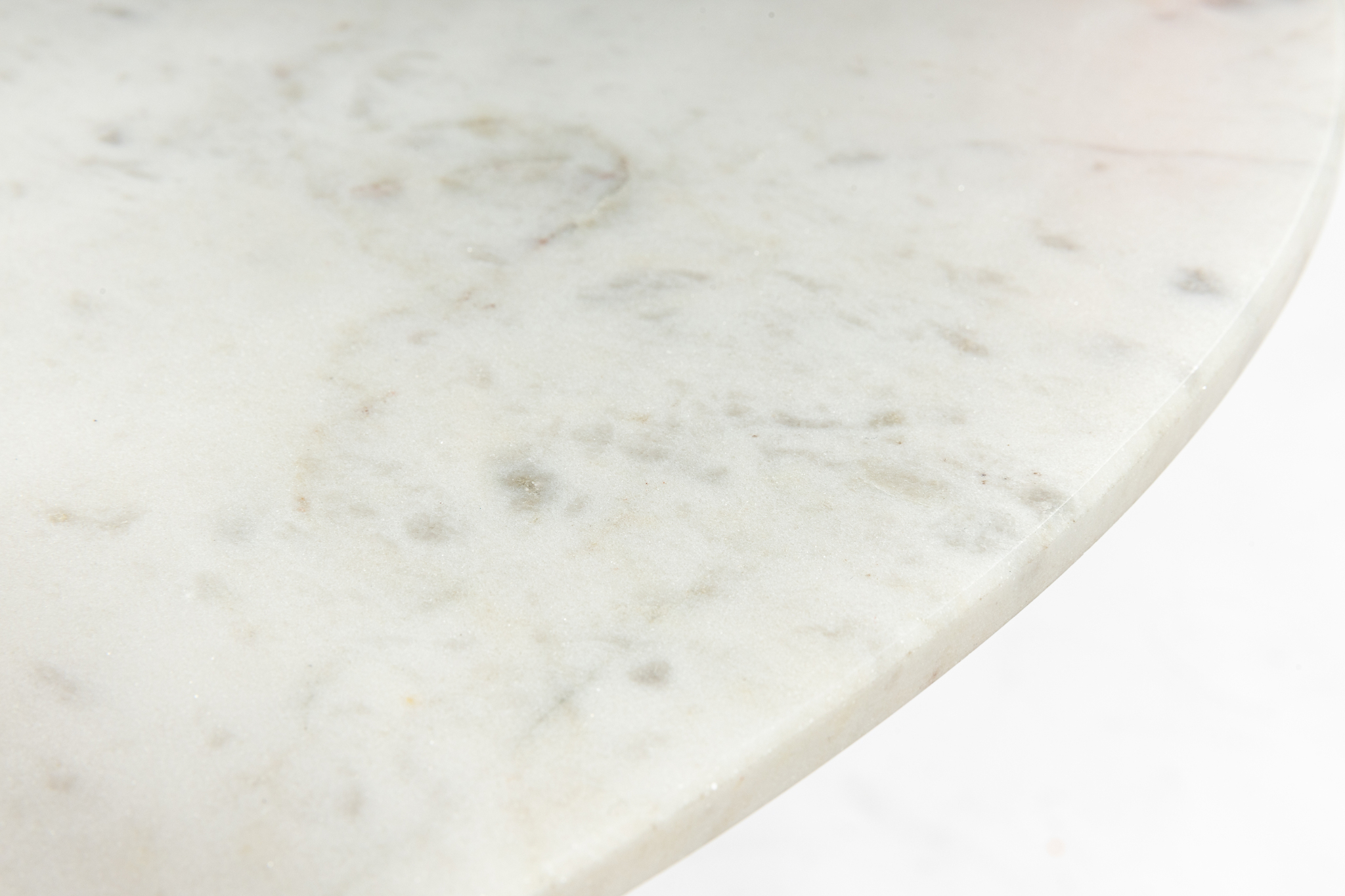 Дизайнерский круглый кофейный стол Slender олицетворяет современный стиль и комфорт. Большая столешница в форме круга на металлической ножке выполнена из природного мрамора. Благодаря этому изделие отличается не только изысканным дизайном, но и невероятной практичностью.