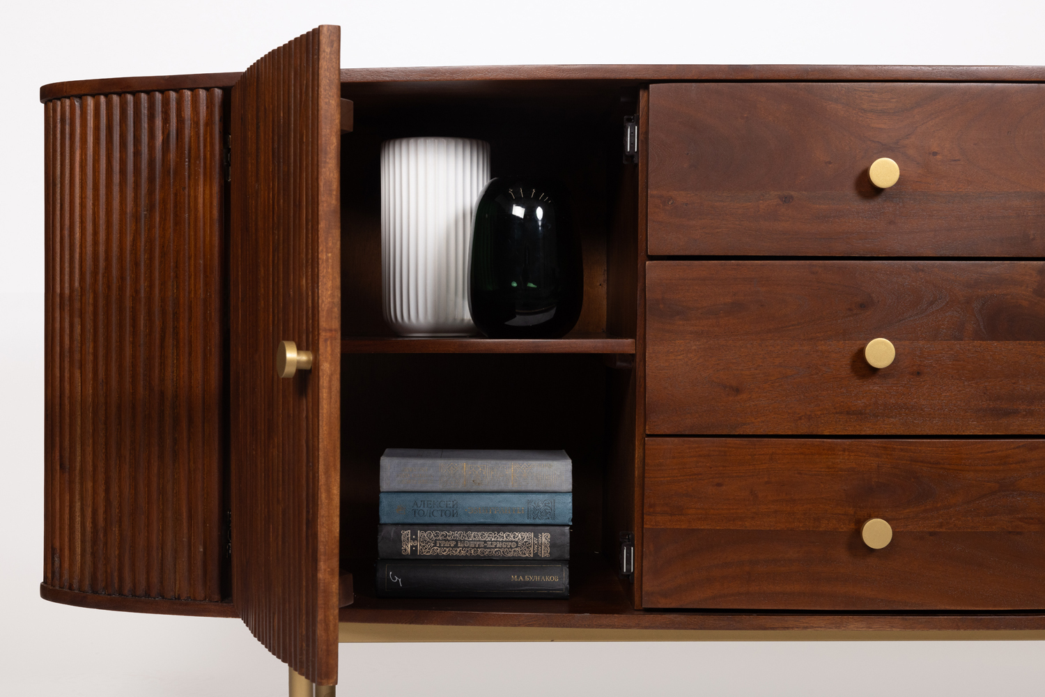 Комод не только функционален, но и благодаря стильной форме, станет эффектным акцентом в интерьере.
