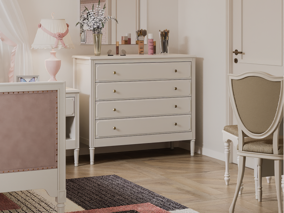У комода прочный каркас из массива бука, корпус из безопасного мдф под эмалью.