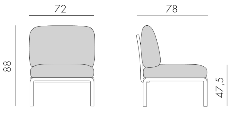- Центральный модуль включает в себя: 1 сиденье, 1 спинку, 1 подушку на сиденье, 1 подушку на спинку.