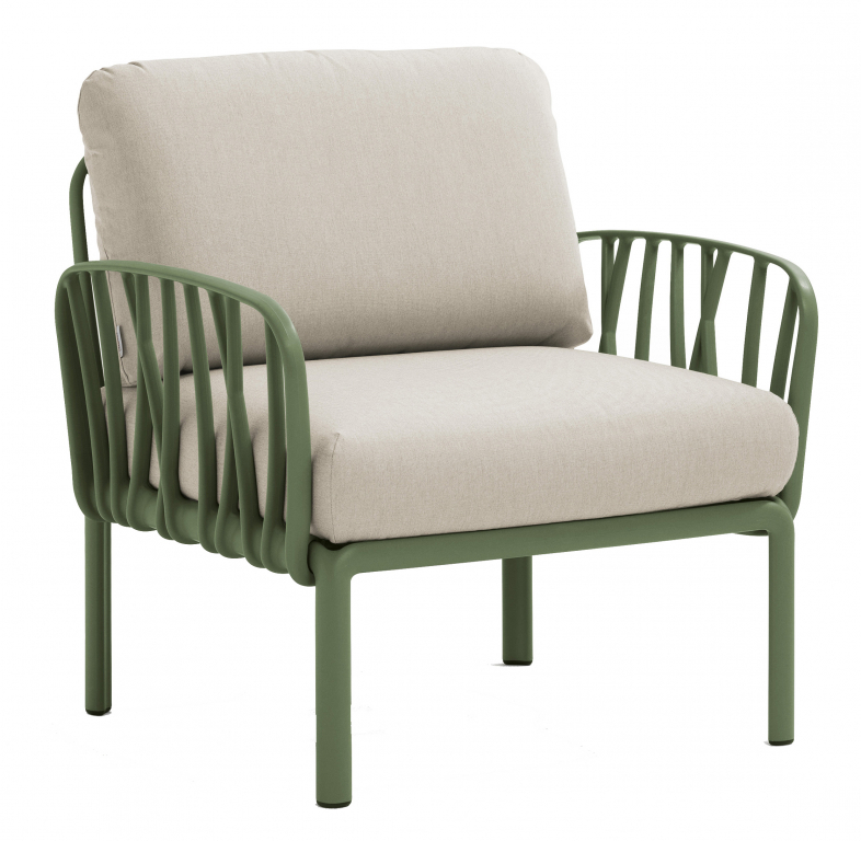 Дизайн: Raffaello Galiotto. На выставке Salone del Mobile 2018 в Милане Nardi представили новую коллекцию модульной мебели Komodo, куда входят различные модульные элементы, благодаря которым можно создавать различные комбинации. Модули Komodo выполнены из стеклопластика, имеют складные спинки и боковины, съемные подушки, благодаря чему можно составить диван любой длины, превратить отдельные модули в столики или пуфы. Ветвистая переплетенная конструкция вытекает из строгого геометрического дизайна, который также включает инновационную систему соединения между спинкой и сиденьем, осуществленную с помощью простого вращения. Последнее решение позволяет избежать непривлекательных стыков и открытых отверстий и поддерживает эстетическую гармонию плетеной конструкции на сиденье и спинке. Особенности: Кресло включает в себя: 1 сиденье, 1 спинку, 2 подлокотника, 1 подушку на сиденье, 1 подушку на спинку. Модель выполнена из полностью перерабатываемого материала - стеклопластика (полипропилен, стекловолокно) - прочного, нетоксичного и антистатичного, устойчивого к любой погоде и средам с повышенной соленостью. Сиденья можно закрепить с одной стороны, а спинки и подлокотники можно прикрепить с любой стороны. Возможные цвета каркаса: белый (bianco), антрацит (antracite), тортора (tortora), агава (agave). Возможные цвета подушек из акрила: серый (grigio), розовый (rosa quarzo). Возможные цвета подушек из ткани Sunbrella: синий (adriatic), лед (ghiaccio), авокадо (avocado), джунгли (giungla), холст (canvas). Возможные цвета подушек из ткани TECH: панама (panama). Матовая отделка, нескользящие ножки. Изделие сертифицировано CATAS. Открыть технические характеристики. Открыть инструкцию по сборке. Можно докупать модули и корректировать размеры мебели под необходимые размеры. Элементы серии Кomodo комбинируются между собой в любой последовательности, создавая индивидуальные решения для Вашего интерьера.