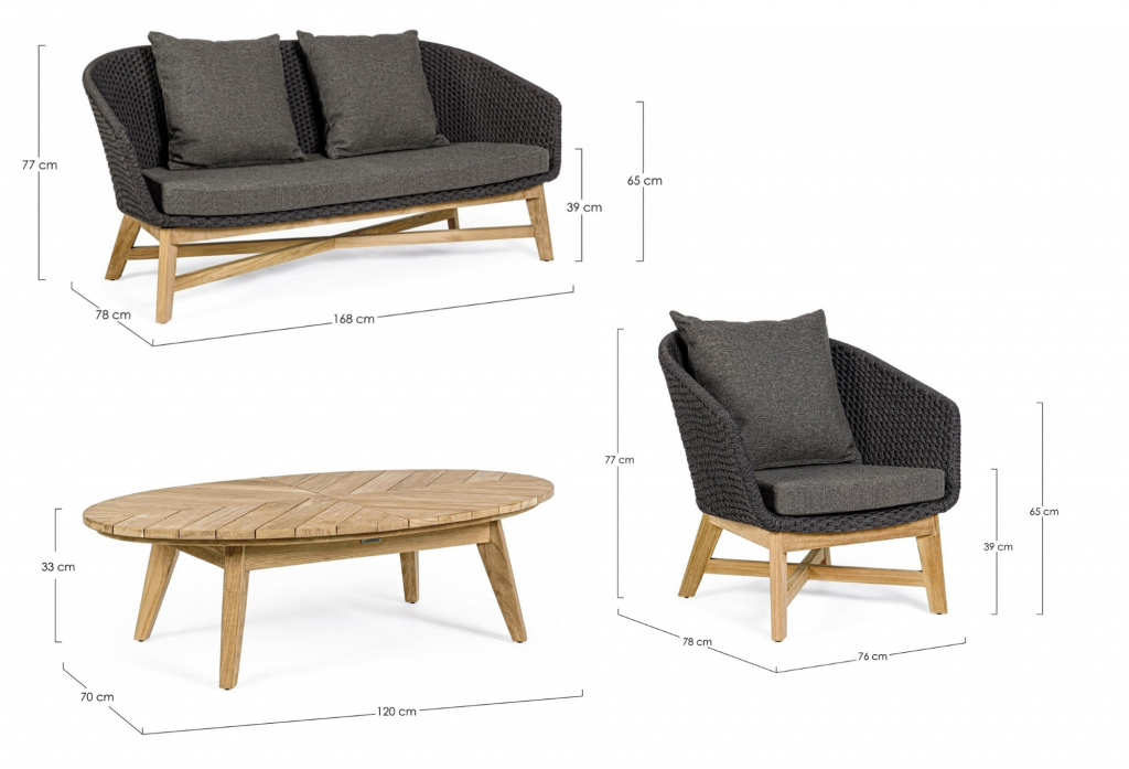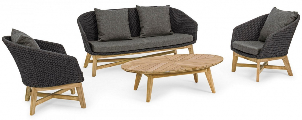 - Спинка, подлокотники дивана и кресел оплетены канатами из олефина (100% полипропилен).