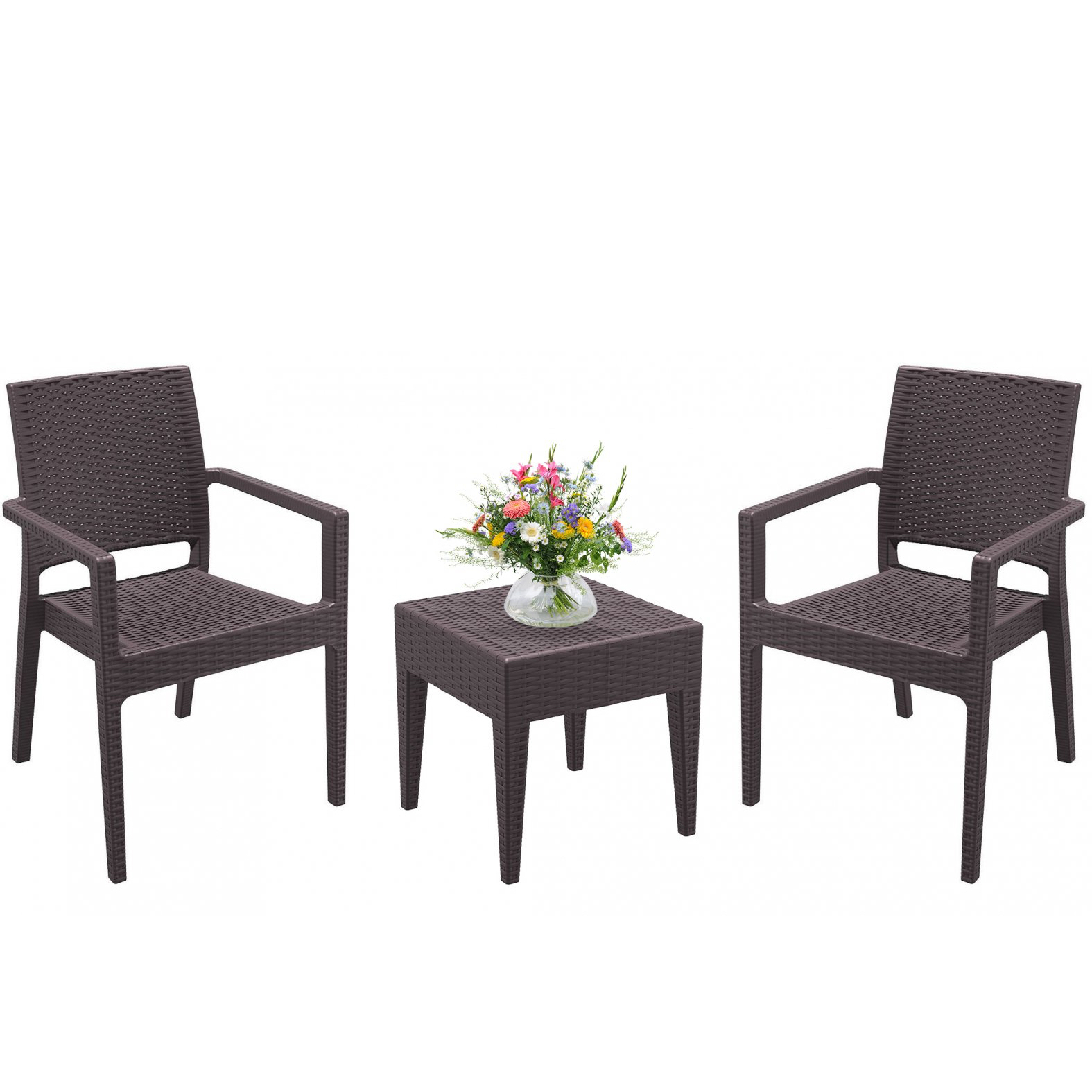 Комплект пластиковой мебели Miami Ibizaсостоит из 2-х кресел Ibiza и столика Miami (GT1009), которые станут отличным выбором для небольших пространств: балконов, террасс, зон возле бассейна. Благодаря использованию высококачественных материалов мебель долгое время не теряет своего привлекательного внешнего вида, даже несмотря на активную эксплуатацию. Благодаря устойчивости к ультрафиолетовому воздействию, кресла и стол из пластика можно использовать в том числе и на открытых площадках.
