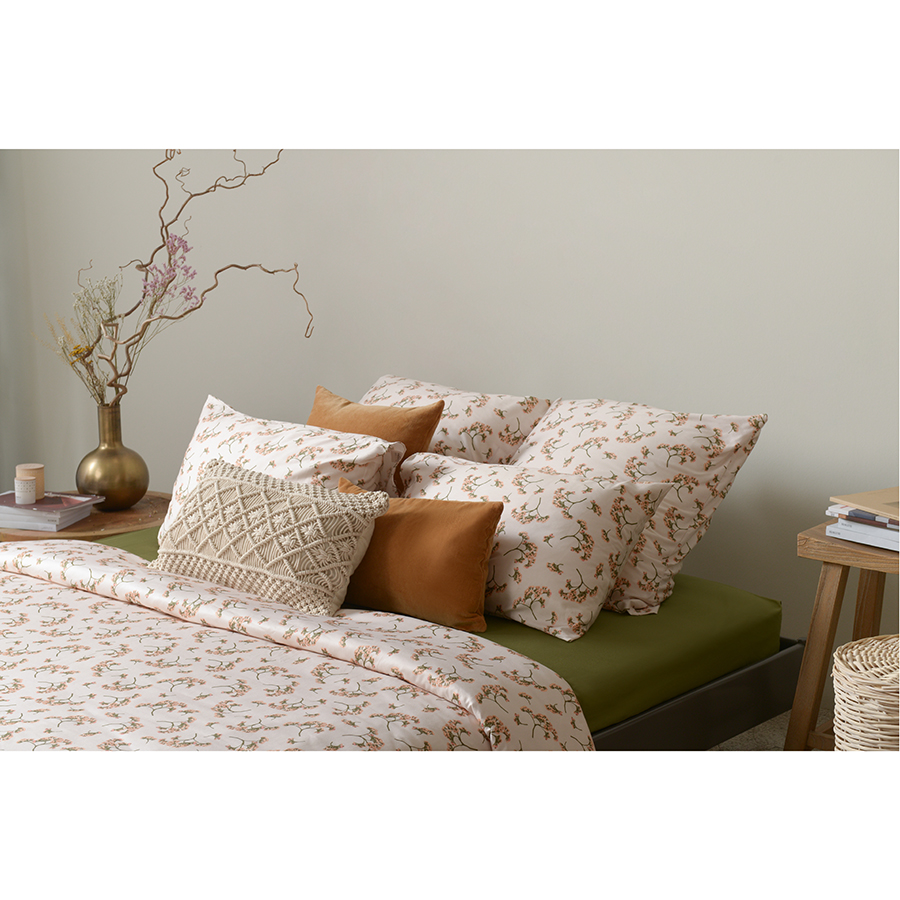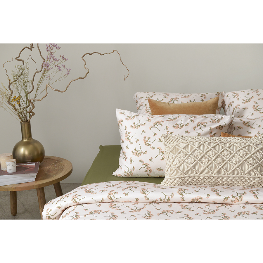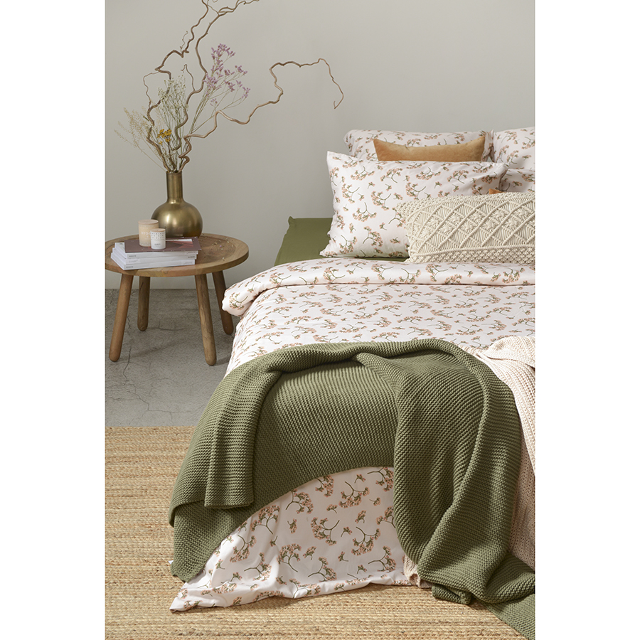 Комплект постельного белья из сатина с растительным принтом "Степное цветение" из коллекции Prairie - прекрасный выбор для любителей классических природных мотивов. Разбавив его наволочками и простыней оливкового или белого цветов из коллекции Essential, вы получите готовое дизайнерское решение для вашей спальни. Хлопковый сатин плотностью 210 ТС приятен на ощупь и обладает естественным блеском. Он не теряет внешний вид даже после множества стирок, не деформируется и не линяет, на нем не образуются катышки. В комплекте: пододеяльник 200х220 см, застегивающийся на пуговицы, и две наволочки 50х70 см с системой закрытия клапан. Упаковка – брендированная крафтовая коробка. ! Максимальная температура стирки 60° C ! Гладить при максимальной температуре 150° C ! Сушить горизонтально ! Не отбеливать ! Возможна сухая чистка
