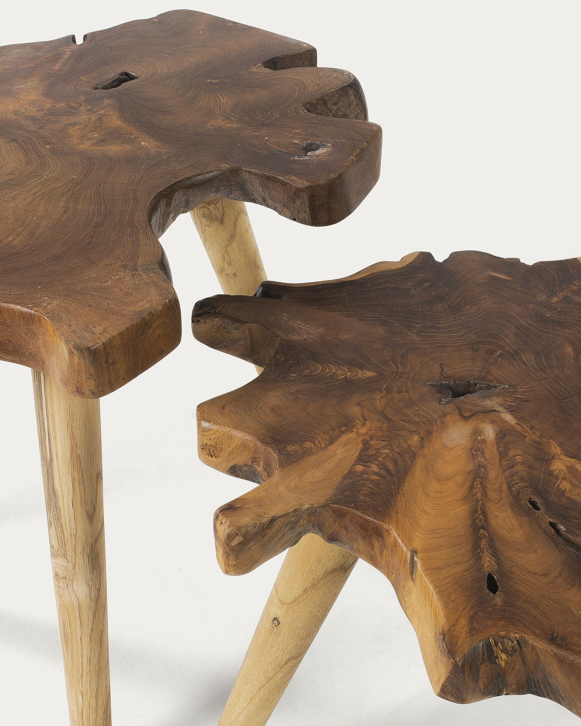 Комплект столиков Harris от фабрики La Forma – природная композиция из тиковой древесины.