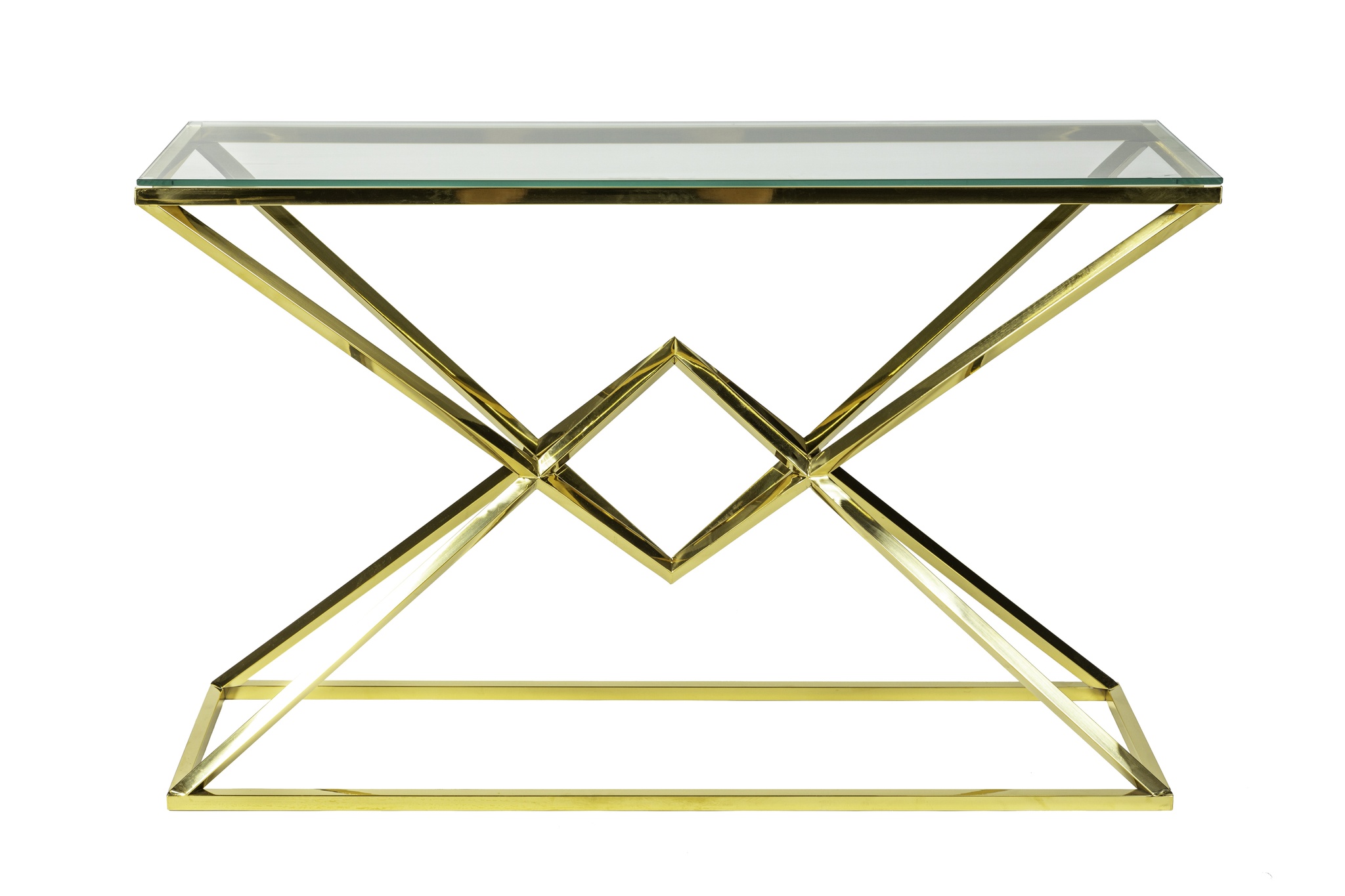 Эффектная консоль Pyramid Gold станет настоящим украшением вашей спальни, гостиной или прихожей. Столешница выполнена из закаленного прозрачного стекла, крепится на оригинальном основании серебряного цвета. Такое сочетание придает ей невесомость и изысканность. Благодаря глубине в 35 см., вы сможете использовать ее как в качестве консоли, так и в качестве туалетного столика.