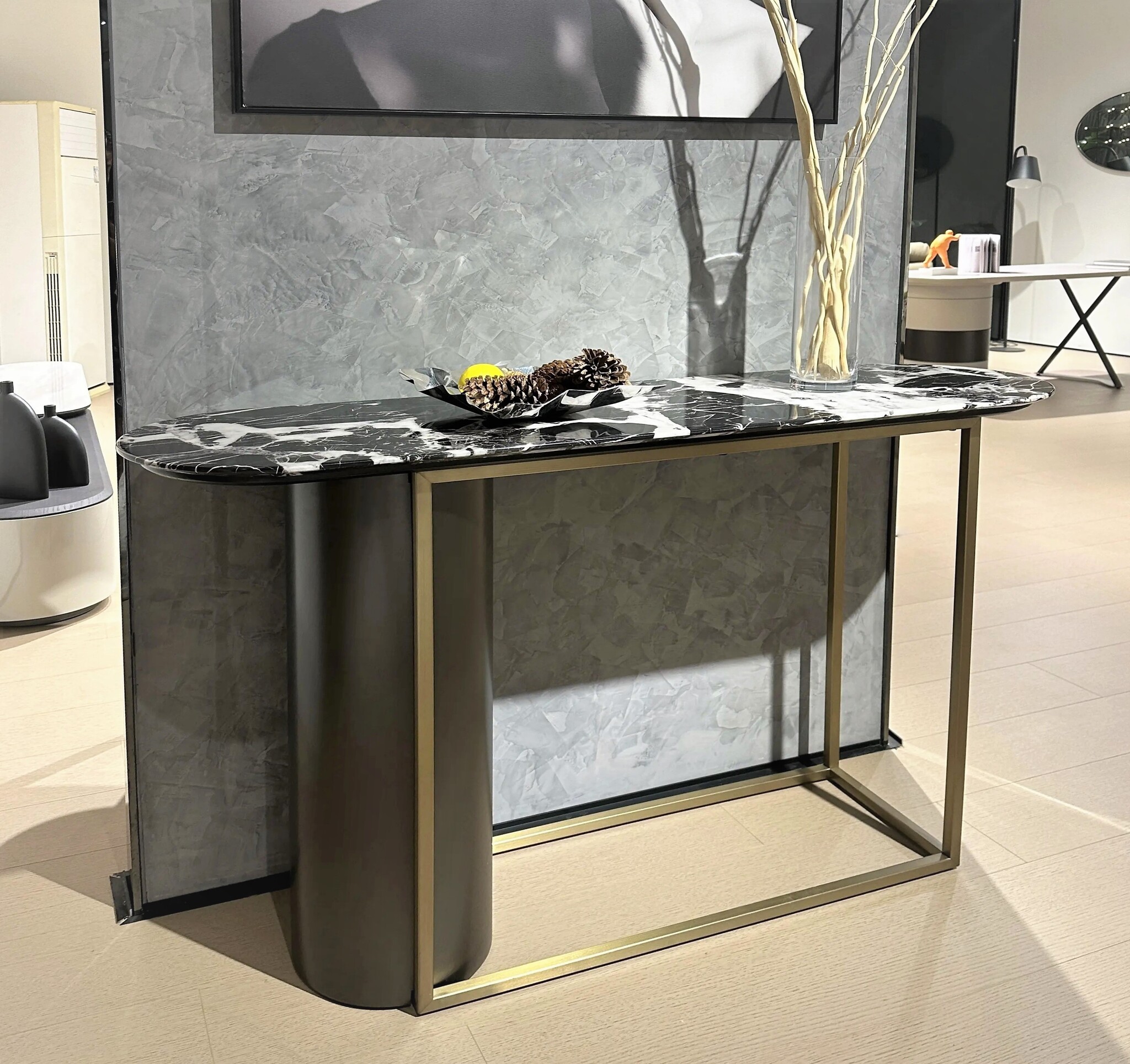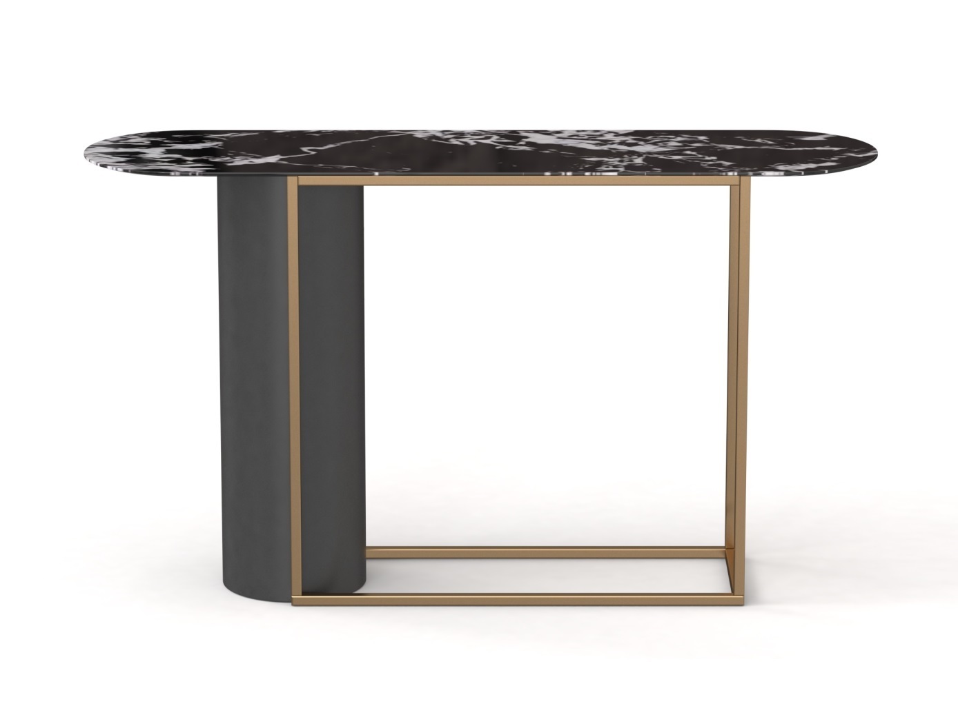 Консоль Reflex сочетает в себе столешницу из натурального мрамора и каркас из нержавеющей стали.