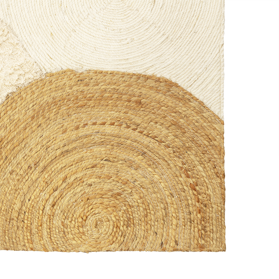 Небольшая разница в цвете и фактуре джута и переработанного текстиля в разных частях ковра делает каждое изделие уникальным. У новых напольных покрытий может присутствовать естественный запах, он абсолютно безопасен и при частом проветривании быстро исчезает. После вскрытия упаковки ковер в течение некоторого времени может сохранять элементы деформации вследствие долгого нахождения в скрученном виде, но уже через 1-2 недели он полностью выпрямится. Ковер может выцветать под воздействием прямых солнечных лучей. Рекомендуем периодически менять расположение изделия, чтобы цвет менялся равномерно.