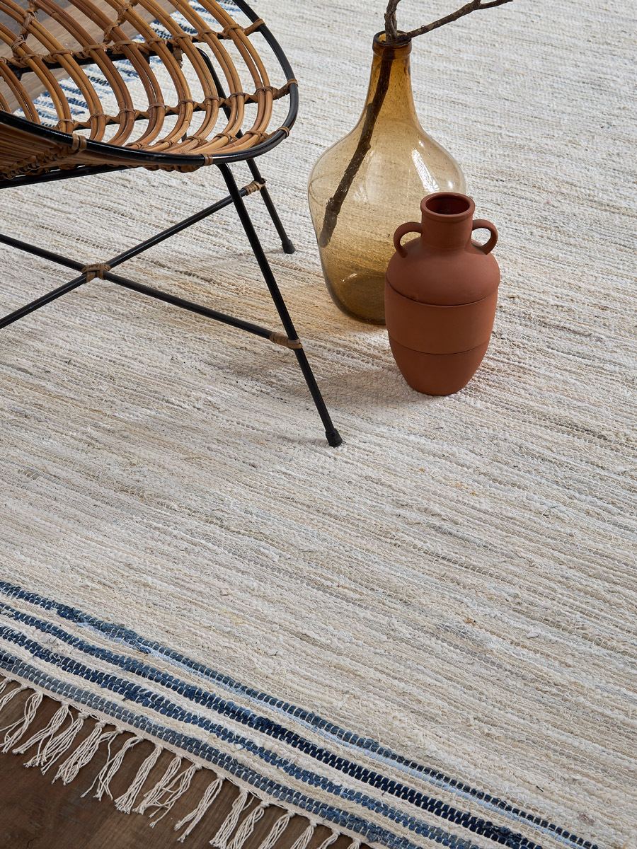 Оформленный декоративным кантом, ковер из хлопка Gujarat из коллекции Ethnic гармонично смотрится в современных интерьерах, подчеркивая их лаконичность. Оригинальное изделие, выполненное из натуральных материалов, будет уместно в гостиной, столовой, детской комнате или в спальне.
