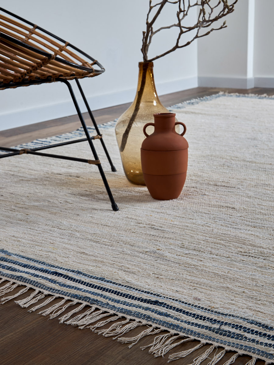 - Ковер из хлопка отлично сохраняет тепло и обладает звукоизоляционными свойствами, обеспечивая в помещении комфортную атмосферу.