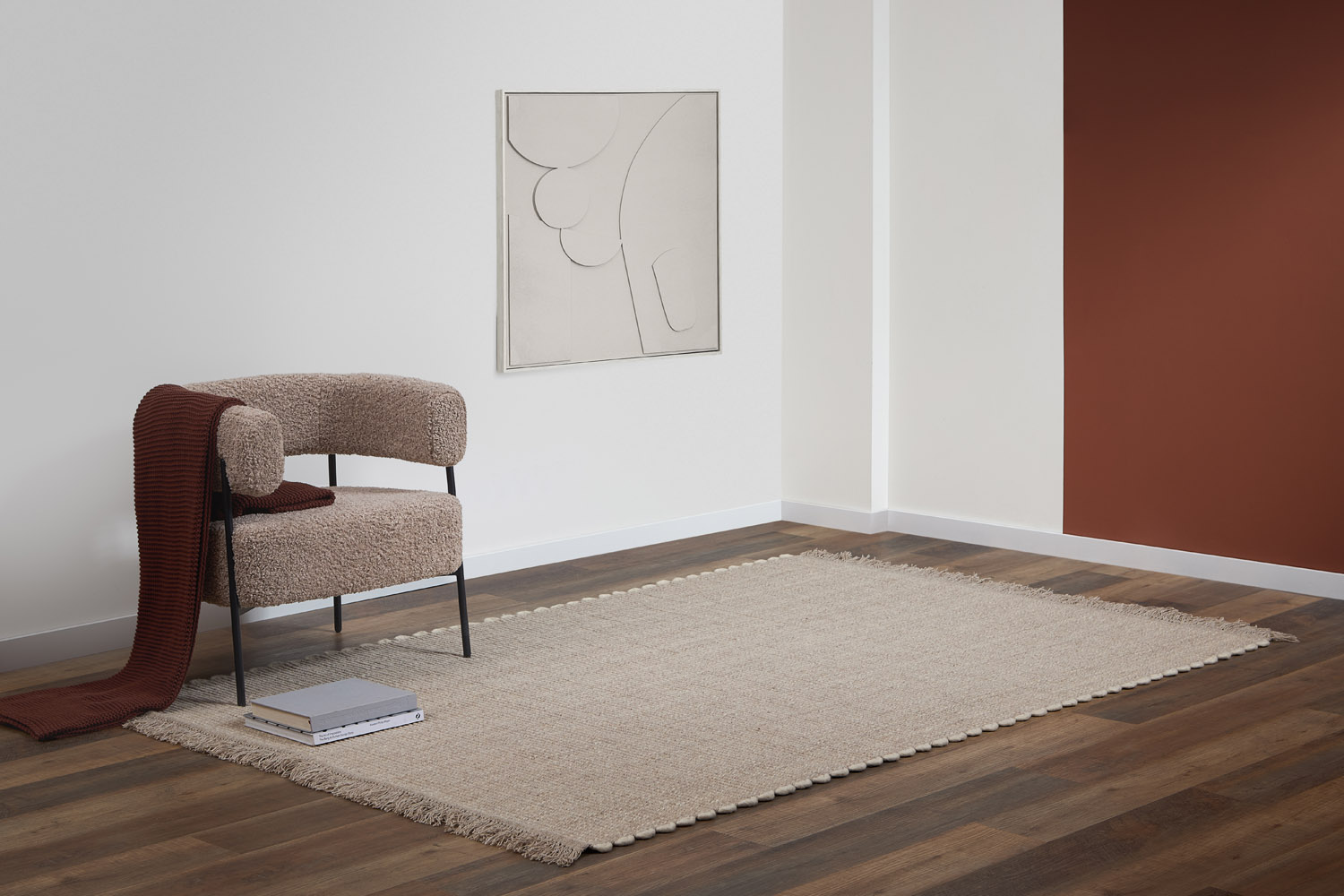 - Лаконичный дизайн и сдержанный графический узор позволяют вписать ковер Badrinath в различные интерьерные стили: сканди, эко, фьюжн, неоклассика и другие.