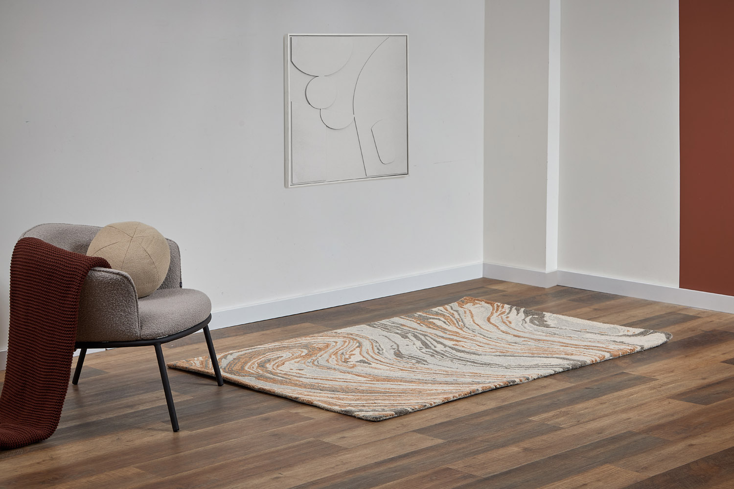 - Выразительный узор и эффектное цветовое решение позволяют вписать ковер Earth в различные интерьерные стили: сканди, эко, фьюжн, неоклассика и другие.