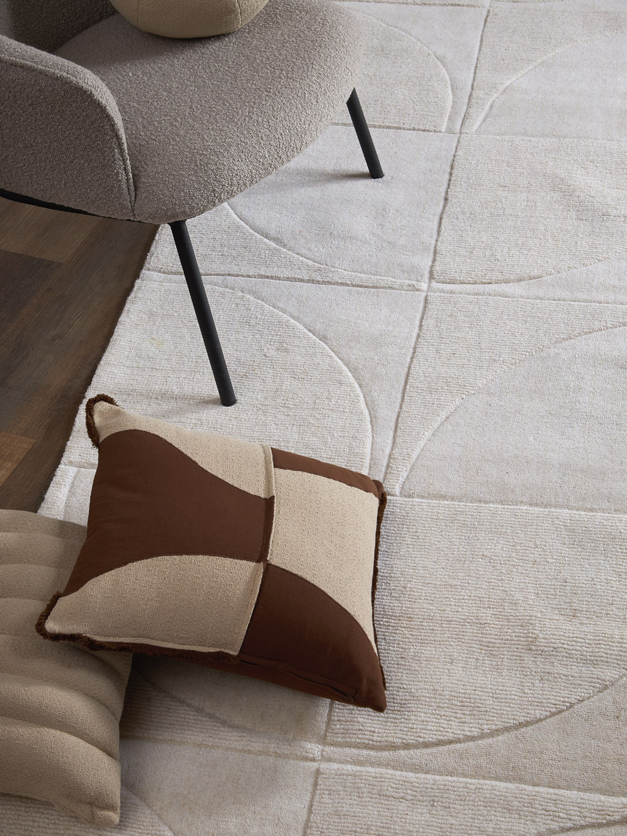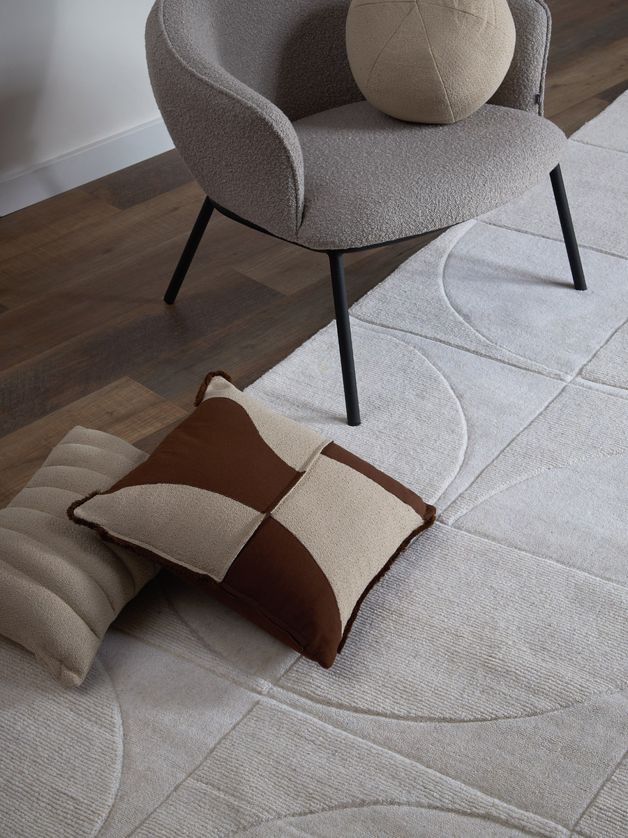 - Лаконичный дизайн и сдержанный графический узор позволяют вписать ковер Kedarnath в различные интерьерные стили: сканди, эко, фьюжн, неоклассика и другие.