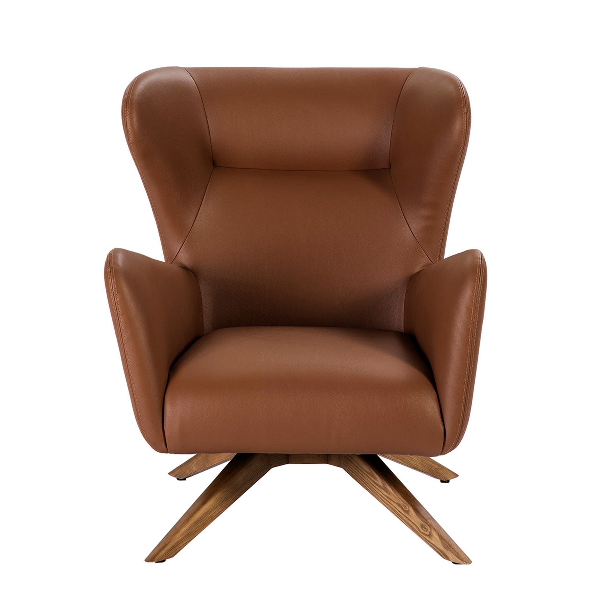 Поворотное кресло из искусственной кожи SF-801E — воплощение стиля в деловом формате от фабрики Angel Cerda. Кресло сразу привлечет внимание деловых людей, который против консерватизма. Здесь создателям гармонично и безупречно удалось соединить традиционный функционал рабочего кресла и современный, во многом оригинальный дизайн. Такая модель станет настоящим украшением в кабинете или собственном «уголке» в гостиной. Это кресло не относится к премиум сегменту, оно вполне доступно, хотя этого не скажешь. Все потому, что каркас, как и ноги, сделаны из натурального дерева (орех). Они гарантируют не только прочность конструкции, но и создают ощущение добротного и долговечного изделия (это на самом деле так). А материал обивки — экокожа, как прекрасная альтернатива дорогой натуральной коже. Материал высокого качества, он прочен и долговечен, прекрасно очищается от загрязнений и не пропускает влагу. Спинка выступает за границы сиденья и слегка завернута вовнутрь. Также как и сиденье с высокими подлокотниками, она смягчена плотным и упругим наполнителем, обеспечивающим мягкость и комфорт. Крестовая нога оснащена поворотным механизмом. Она имеет большой радиус охвата, благодаря чему обеспечивает хорошую устойчивость. Размеры кресла составляют 75 см × 90 см × 86 см (ширина, высота, глубина). Требуется самостоятельная сборка (инструкция и крепеж входят в комплект).