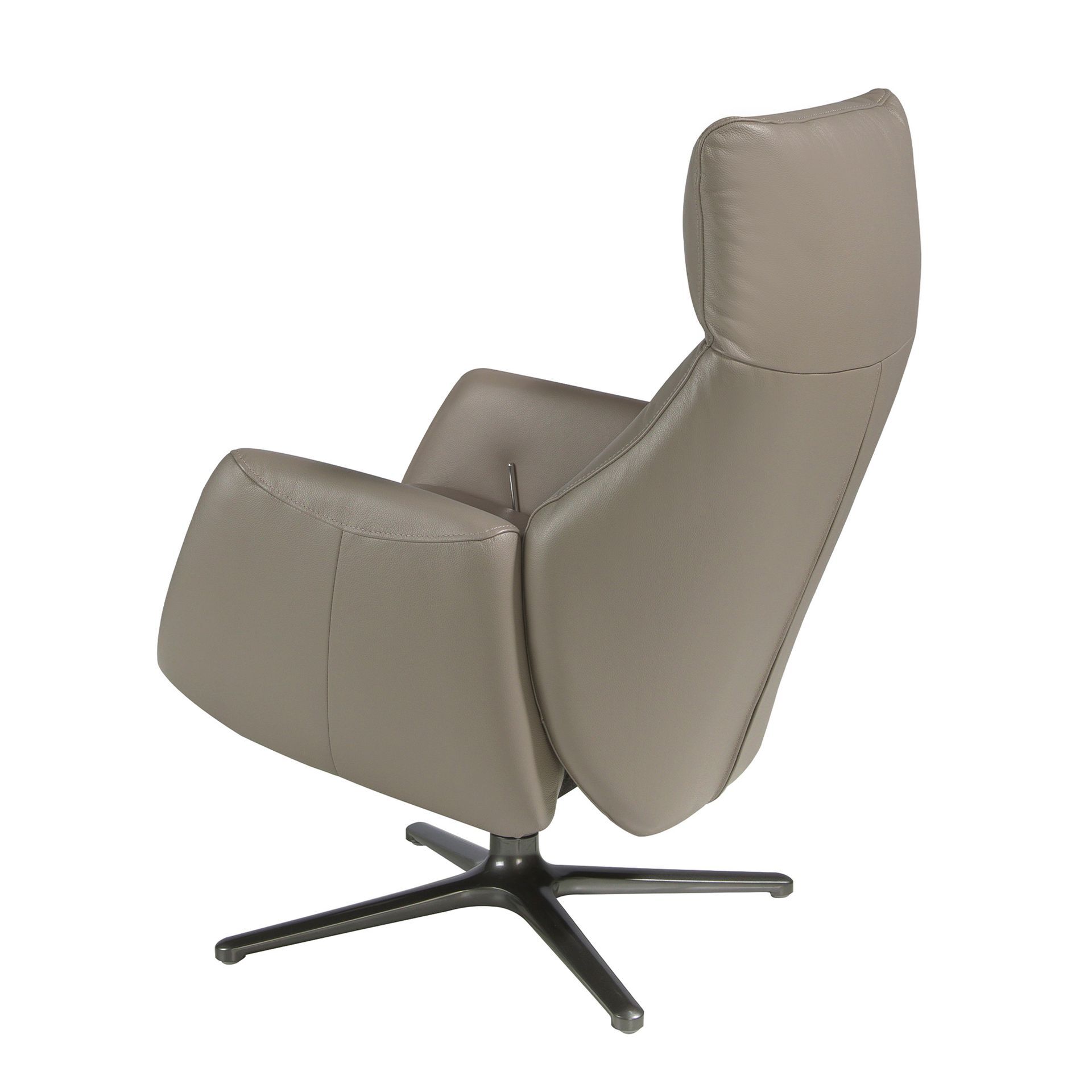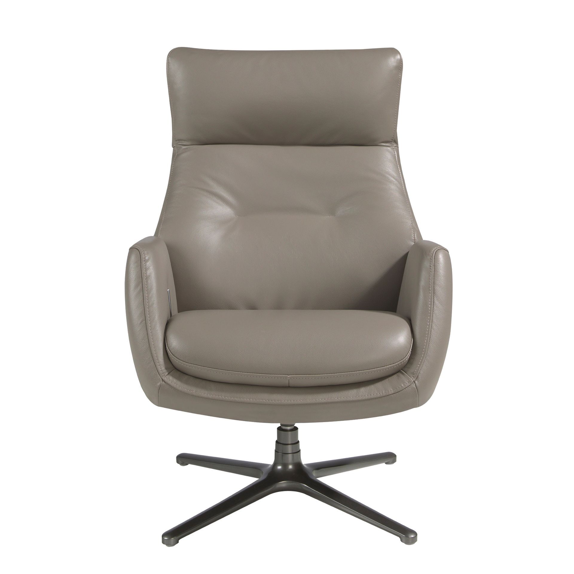 Вращающееся кресло с обивкой из воловьей кожи. Структура ножек из затемненной нержавеющей стали.