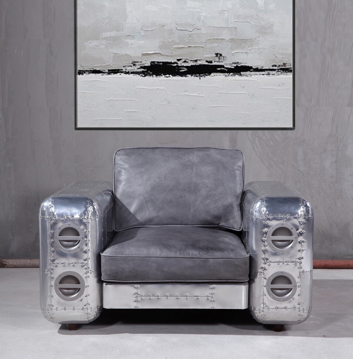 Кресло представлено в отделке из алюминиевых листов с заклепками. Ручная работа.