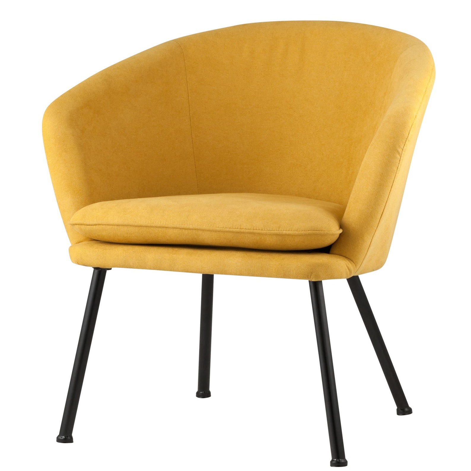 Широкая спинка плавно переходит в удобные подлокотники высотой 69,5 см от пола. Для дополнительного комфорта в кресле есть мягкое плотное сиденье. В качестве обивки используется ткань шенилл, плотный износостойкий материал с бархатистой структурой, приятный на ощупь. Металлический каркас добавляет устойчивости и выдерживает нагрузку до 120 кг. Ножки металлические черные.