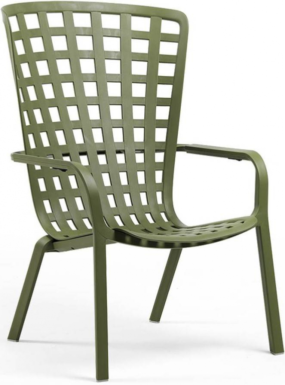 Folio - это инновационное расслабляющее кресло, регулируемое в двух положениях, предназначенное для уличного использования. Изготовлено из перерабатываемой стекловолоконной смолы. Кресло Folio может быть выполнено с фиксированным основанием либо на ножках-полозьях как романтическое кресло-качалка. Основная конструкция кресла сделана из одного перфорированного стекловолоконного листа (отсюда и название на итальянском языке "folio"), украшенного квадратным узором. Особенностью кресла является его изогнутый дизайн, не требующий каких-либо связующих элементов между сидением и спинкой. Кресло Folio полностью изготовлено в Италии - от дизайна до изготовления пресс-форм и производства.