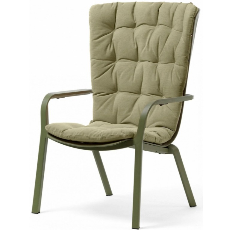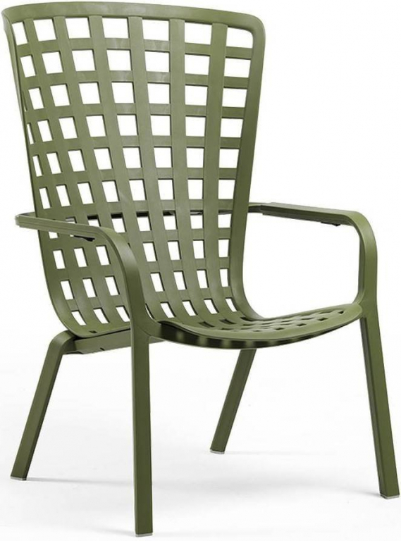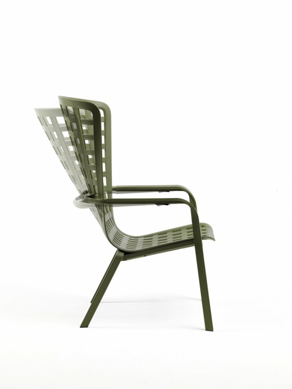 Folio - это инновационное расслабляющее кресло, регулируемое в двух положениях, предназначенное для уличного использования. Изготовлено из перерабатываемой стекловолоконной смолы. Кресло Folio может быть выполнено с фиксированным основанием либо на ножках-полозьях как романтическое кресло-качалка. Основная конструкция кресла сделана из одного перфорированного стекловолоконного листа (отсюда и название на итальянском языке "folio"), украшенного квадратным узором. Особенностью кресла является его изогнутый дизайн, не требующий каких-либо связующих элементов между сидением и спинкой. Кресло Folio полностью изготовлено в Италии - от дизайна до изготовления пресс-форм и производства.