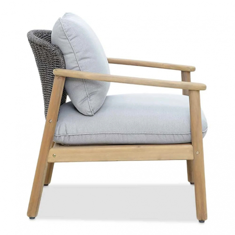 Freeport - это воплощение современного стиля и элегантности для вашего сада. Коллекция, созданная из натуральной акации в сочетании с изысканным веревочным плетением и серыми подушками, привносит уют и роскошь в любое открытое пространство. Просторное мягкое кресло - идеальный компаньон для отдыха на свежем воздухе. Прочный деревянный каркас обеспечивает надежность и долговечность, а модный дизайн подчеркивает вкус и статус владельца. Freeport - это комфорт, стиль и природная эстетика на вашей веранде.