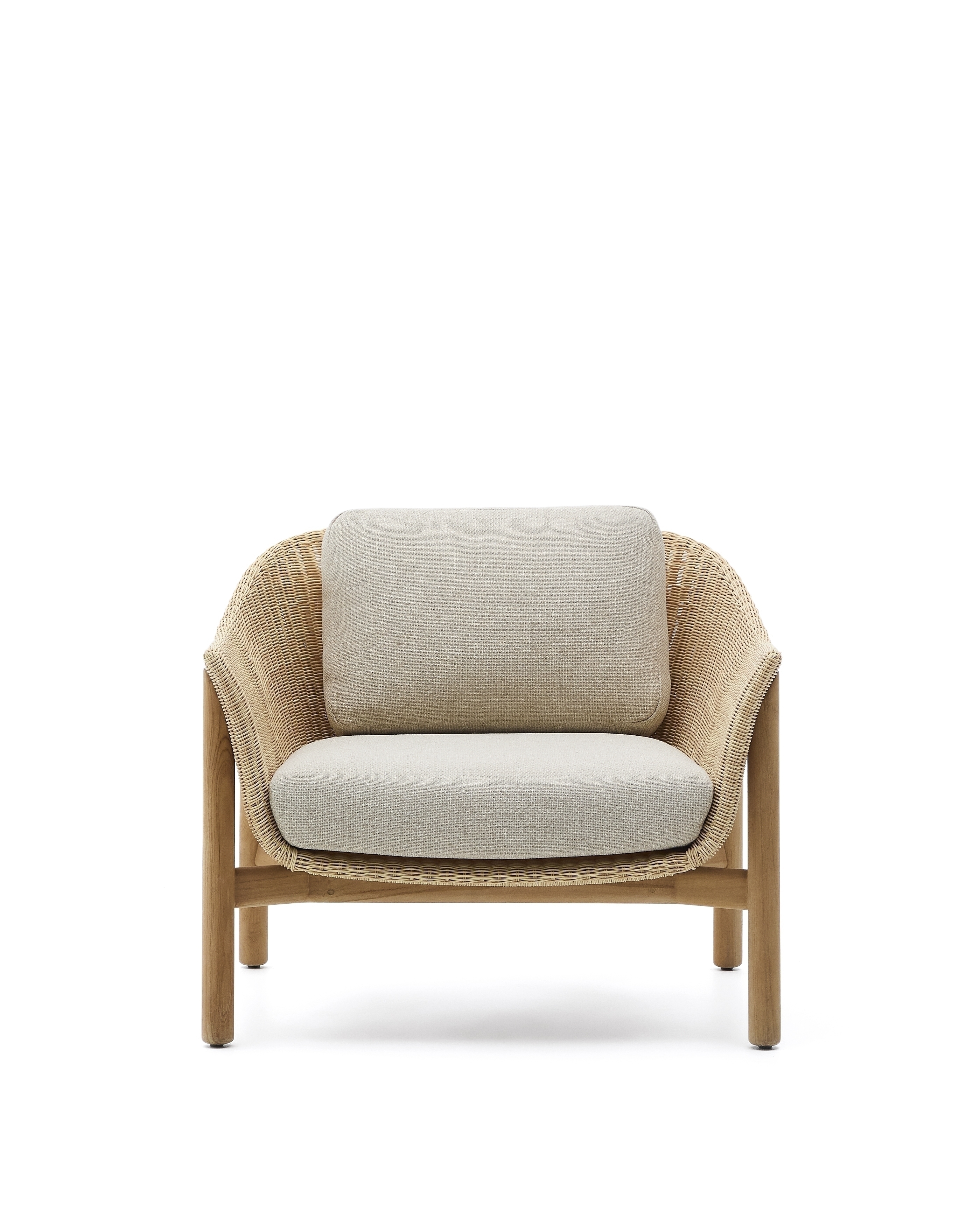 Коллекция Galea, разработанная Made Studio для Kave Home, — это дань уважения традиционному мастерству, адаптированному к современным потребностям. Каждое изделие — это идеальное сочетание эксклюзивного дизайна и функциональности, созданное на века и гармонично вписывающееся в любое пространство на улице или в помещении. Твердое дерево тикового дерева, сертифицированное FSC 100%™, не только гарантирует экологичность и ответственное лесопользование, но и дарит естественное тепло, которое подчеркивает красоту каждого изделия. Синтетический ротанг ручной работы, имитирующий плетение, обеспечивает исключительную устойчивость к атмосферным воздействиям и очень прост в уходе. Комфорт и практичность лежат в основе этой коллекции. Подушки со съемными чехлами, покрытыми сетчатой пеной, которая пропускает воду через подушку, не задерживаясь внутри, и быстро сохнет, разработаны таким образом, чтобы обеспечить комфорт пользователя, подходящего для использования на открытом воздухе. Чтобы сохранить натуральность этих изделий с течением времени, мы рекомендуем наносить средство Sterina wood protector не реже двух раз в год.