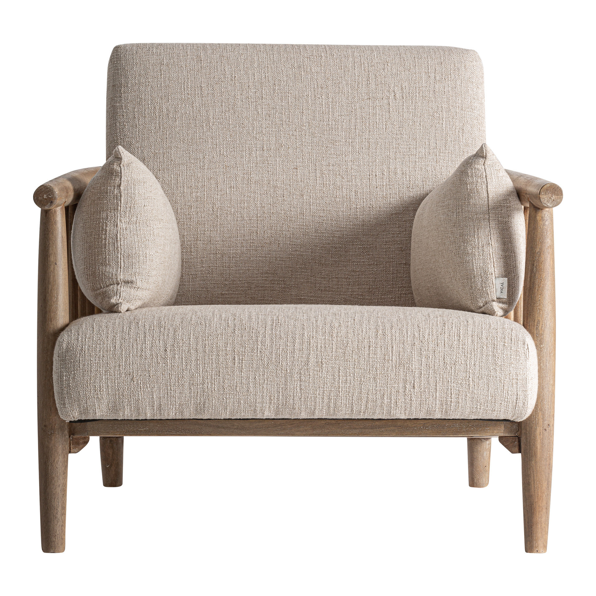 Кресло Grebin в современном стиле, изготовлено из берёзовой древесины коричневого цвета в сочетании с бежевым хлопком. Чехол съёмный.
