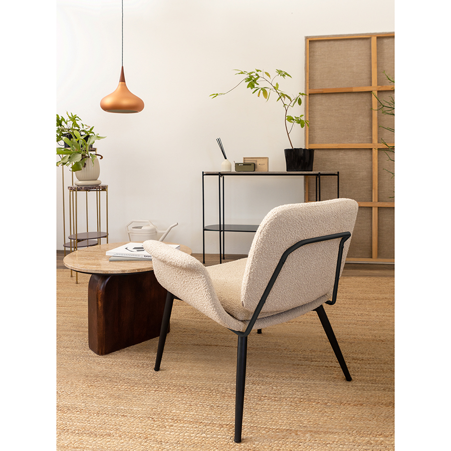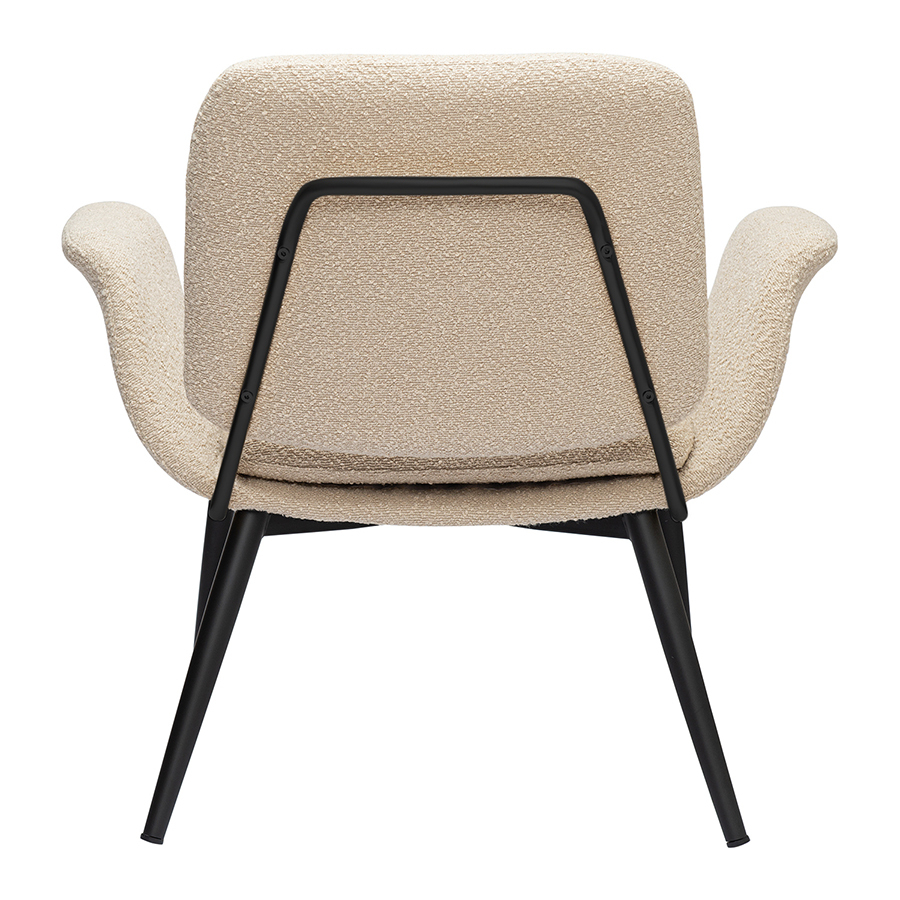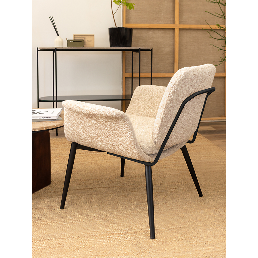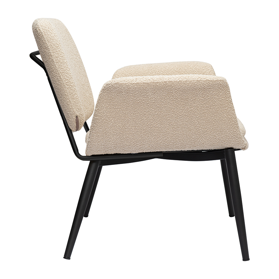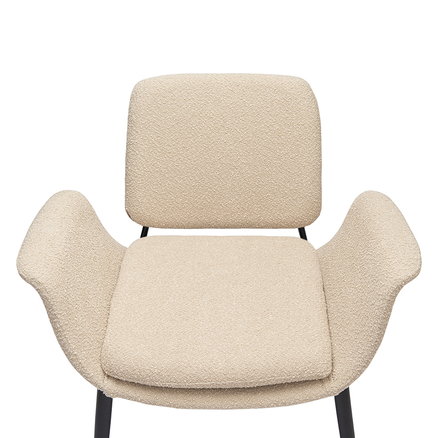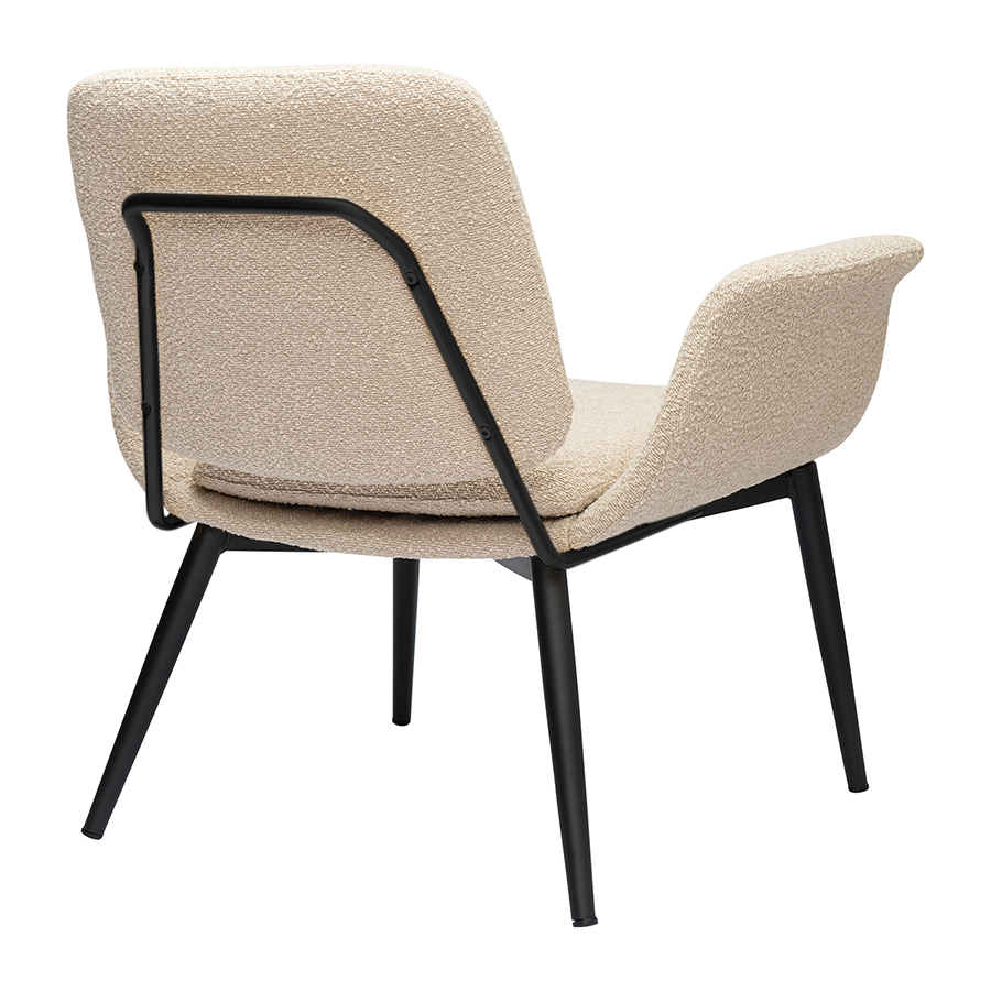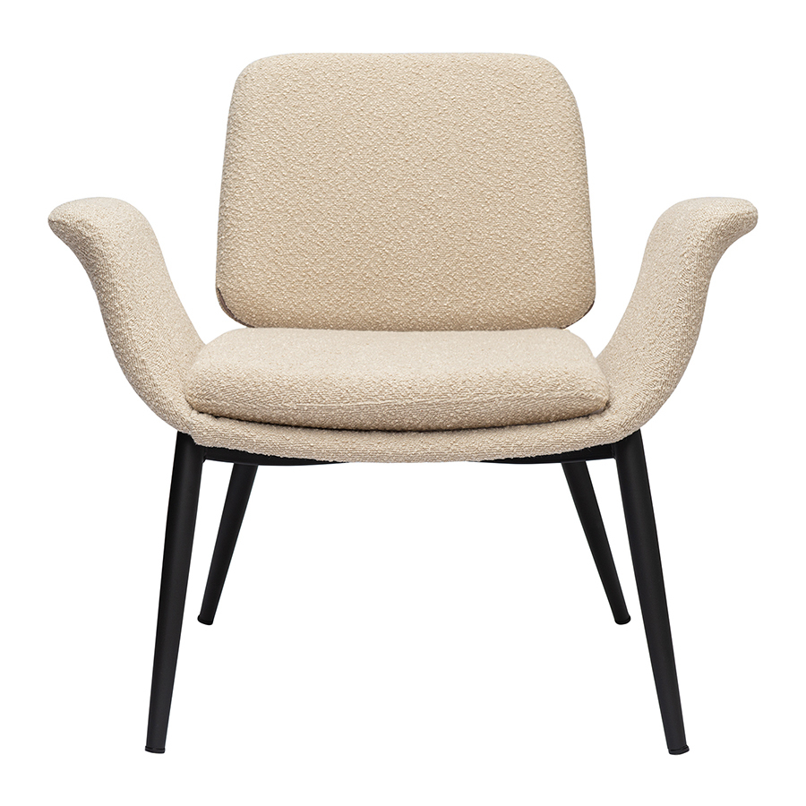 - Обивка из буклированной ткани делает кресло уютным и элегантным. Прочный и износостойкий материал долго сохраняет первоначальные качества, легко чистится.