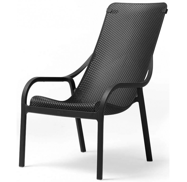 Кресло Net Lounge выделяется своим минималистичным дизайном, извилистым профилем, напоминающим нежные морские волны. Низкое положение сиденья и продуманный наклон спинки облегчают эргономичное распределение веса тела и его благополучие. Конструкция легкая и дышащая благодаря радиальному рисунку квадратных перфораций, равномерно распределенных по трехмерной поверхности кресла, матовой, слегка закругленной и приятной на ощупь.