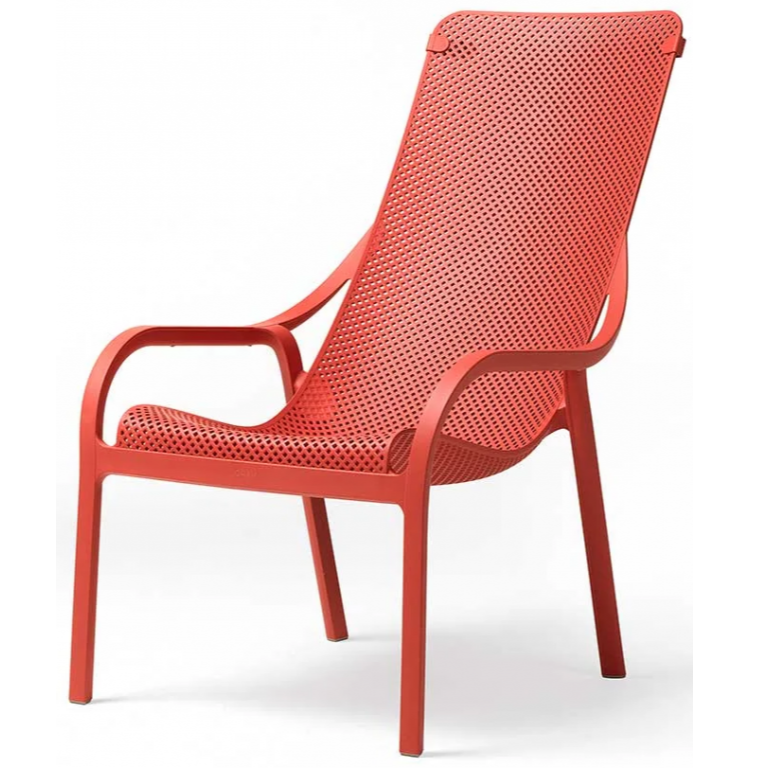 Кресло Net Lounge выделяется своим минималистичным дизайном, извилистым профилем, напоминающим нежные морские волны. Низкое положение сиденья и продуманный наклон спинки облегчают эргономичное распределение веса тела и его благополучие. Конструкция легкая и дышащая благодаря радиальному рисунку квадратных перфораций, равномерно распределенных по трехмерной поверхности кресла, матовой, слегка закругленной и приятной на ощупь.