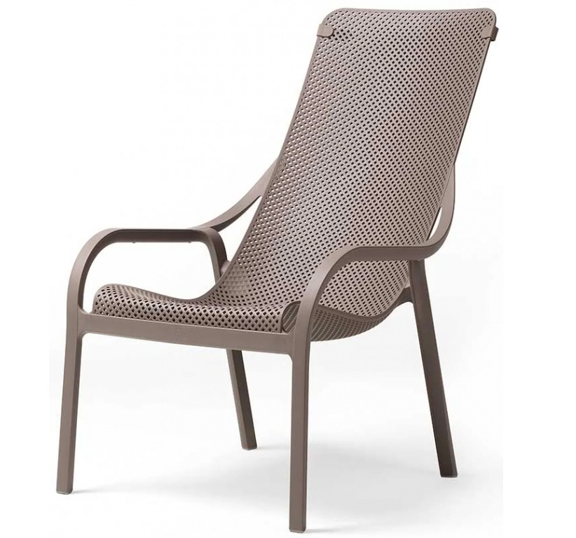 Кресло Net Lounge выделяется своим минималистичным дизайном, извилистым профилем, напоминающим нежные морские волны. Низкое положение сиденья и продуманный наклон спинки облегчают эргономичное распределение веса тела и его благополучие. Конструкция легкая и дышащая благодаря радиальному рисунку квадратных перфораций, равномерно распределенных по трехмерной поверхности кресла, матовой, слегка закругленной и приятной на ощупь.