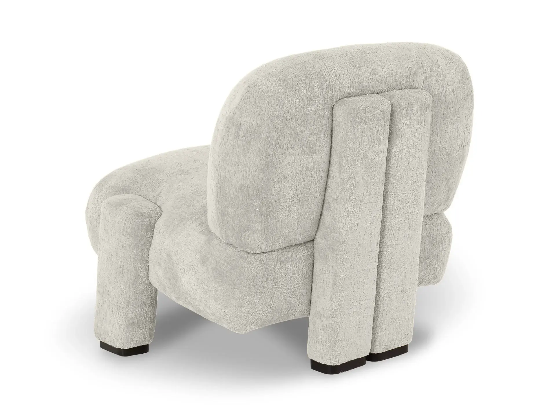 Мягкое кресло с низкой посадкой. Незаметные маленькие ножки приподнимают над полом комфортное сиденье, плавно перетекающее в спинку. Силуэт словно «левитирует» над полом, напоминая нежное облачко, на котором хочется «почилить и расслабиться».