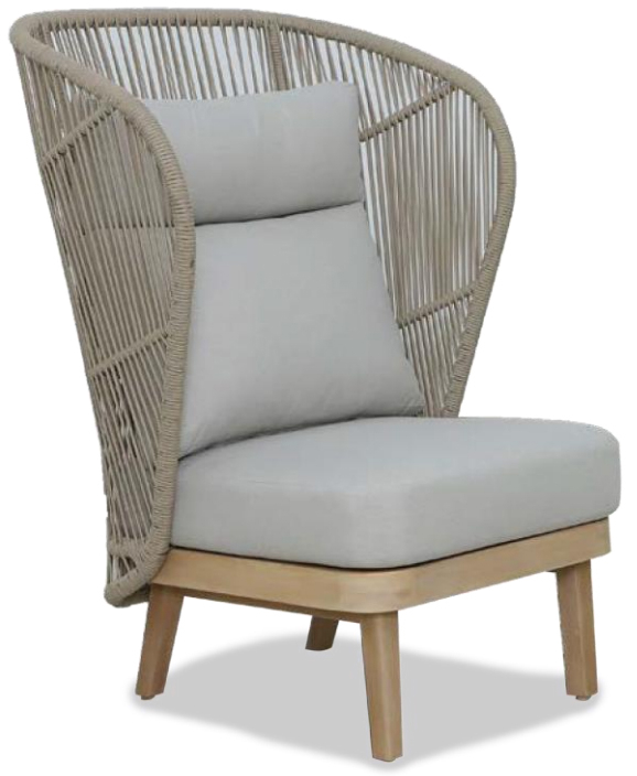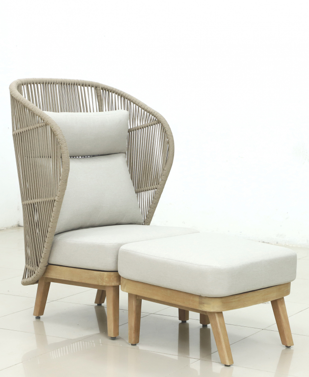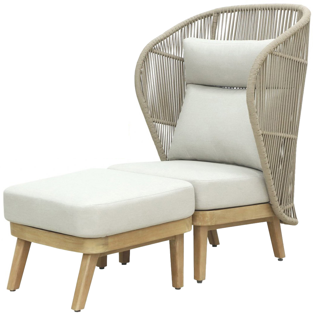 Окунитесь в безмятежность с помощью лаунж комплекта Mali. Этот ансамбль, состоящий из лаунж кресла с высокой спинкой и прямоугольного пуфа с подушками, создает расслабляющее пространство для задушевных бесед. Прочный алюминиевый каркас украшен очаровательными акцентами из роупа и устойчивыми к атмосферным воздействиям подушками, а изысканные ножки из эвкалипта придают образу очаровательный шарм.